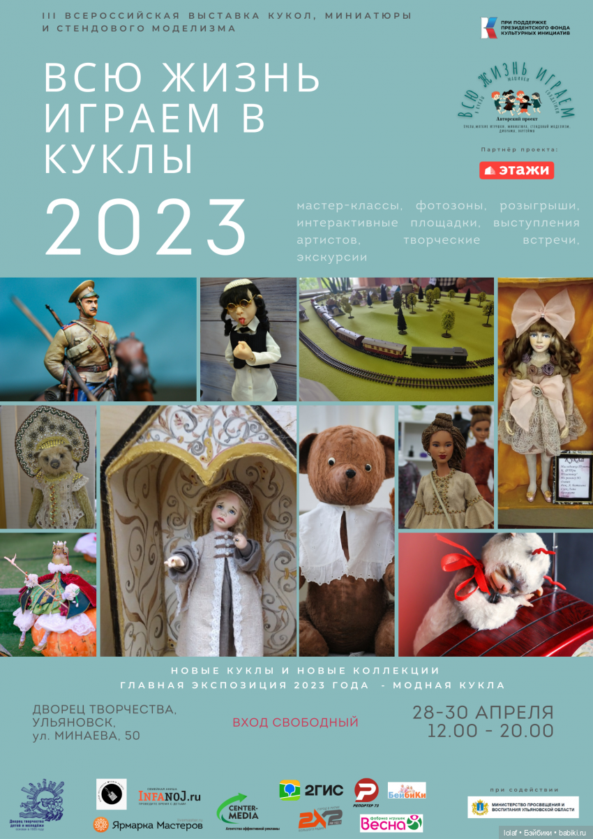 Будет участником III-й Всероссийской выставки кукол, миниатюры и стендового моделизма «Всю жизнь играем в куклы — 2023», 28-30 апреля в Ульяновске