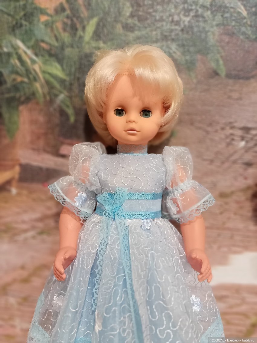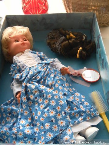 Когда мы с мамой увидели, что продают немецких кукол, на витрине в открытой коробке стояла блондинка с карими глазами. Карие глаза мне нравились не очень, но куклу хотелось, поэтому я промолчала. Продавец взяла из стопки и протянула мне закрытую коробку, и мы с мамой довольные пошли домой. Когда уже дома я сняла крышку с коробки, на меня смотрела кукла с голубыми глазами! Это было почти как чудо! Конечно, она сразу стала моей!