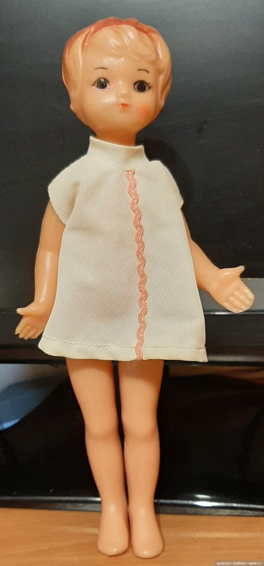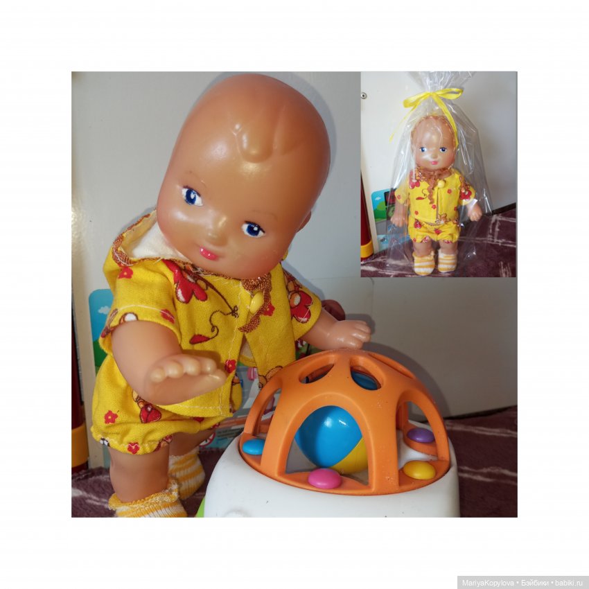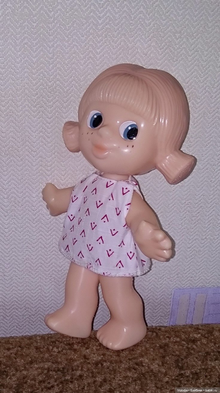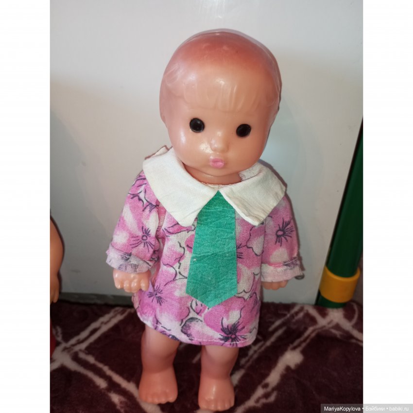 Можно принять за рабочую версию, что у меня была кукла мальчик, но с костюмом что-то случилось либо ещё на фабрике, либо в первые дни игры уже дома, и мне переодели куклу в женское платье, всё равно ведь непонятно по внешнему виду, что это мальчик.