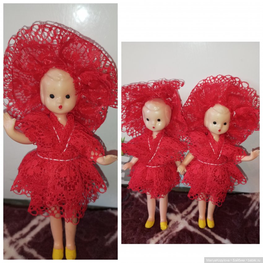 Ниже есть ссылка на топик с киевскими куколками, видимо, в разном возрасте мне покупали двух разных куколок киевской фабрики Победа.
