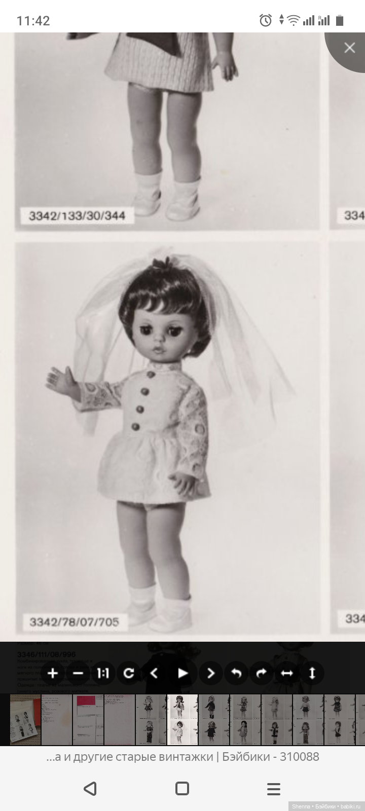 А куклу, зная более точно, где искать, мы уже даже нашли случайно — это Сонни, кукла-невеста из самого первого топика с представительским каталогом, фото почему-то не вставилось, следующим комментарием вставлю. Она 42 см ростом, а не 40, Оля вспомнила, что, по рассказам её мамы, у куклы когда-то была фата.