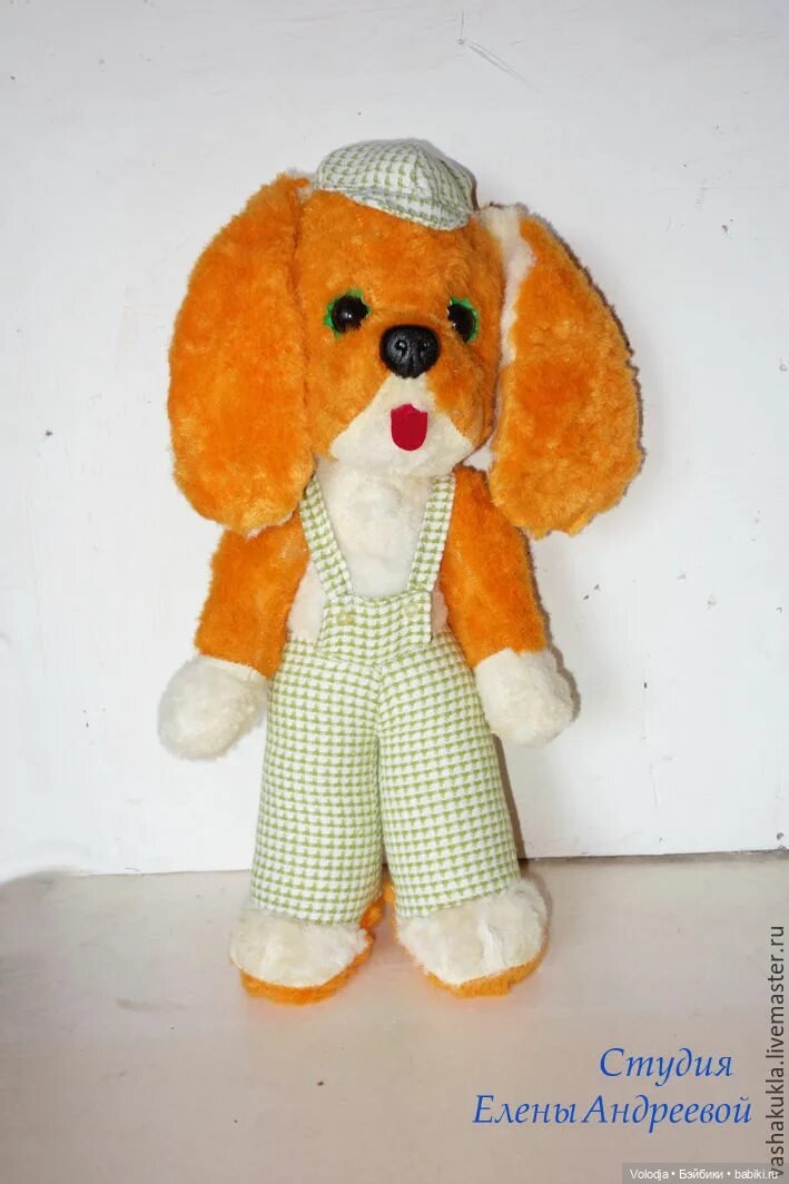 У меня в детстве большая любимая собака была в клетчатом комбинезоне с тявколкой внутри советская, так что возможно ваша обезьянка советская была.