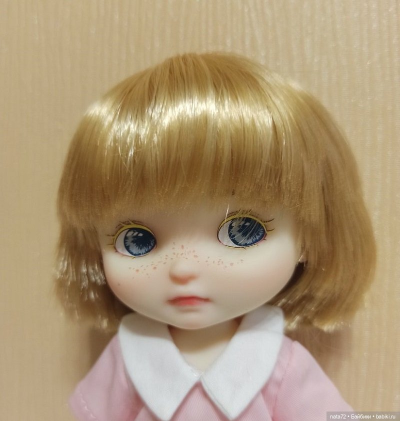 У моей волосы немного с пшеничным оттенком. Как зовут пока не говорит, ну ооочень скромная и стеснительная. Так и зову её пока — моя малышка))) Вообще у меня часто так бывает, что куколки подолгу без персонального имени живут. Я их не тороплю, жду, когда куколки сами откроются)))
