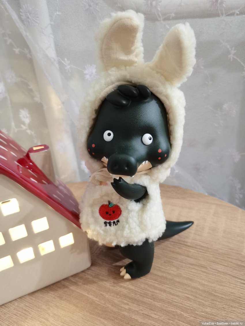 Берет от Xiaomi Monst примерно подошёл по размеру и свитер для Лабубу натянулся (но только через хвост, голова умная и большая).