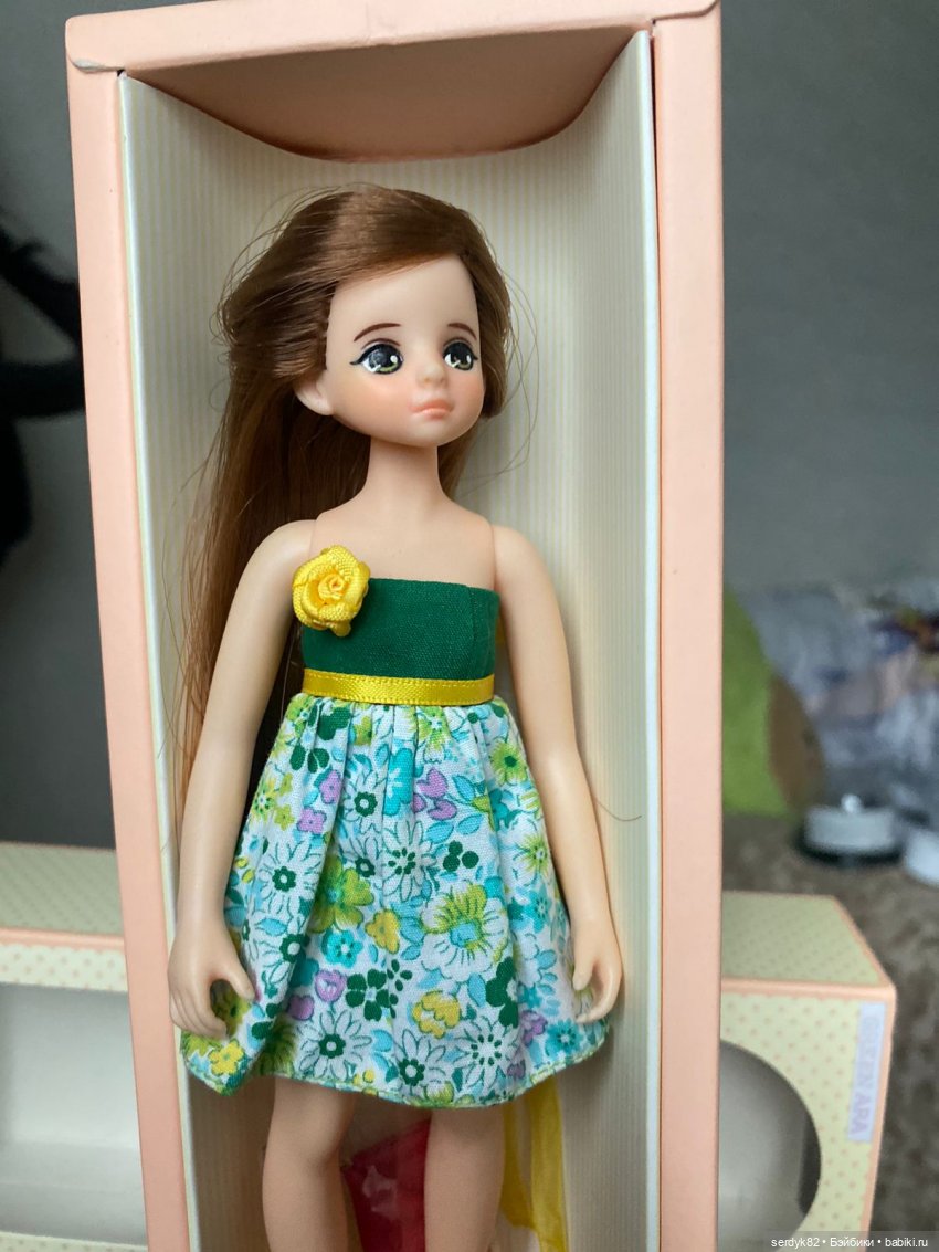 Продавалась в таком же виде и одежде, как Pure Milk Ara, отличаются более медовым оттенком блонда. У части кукол из этого выпуска, которые продавались на выставке, автор забыла нарисовать блик на глазах)