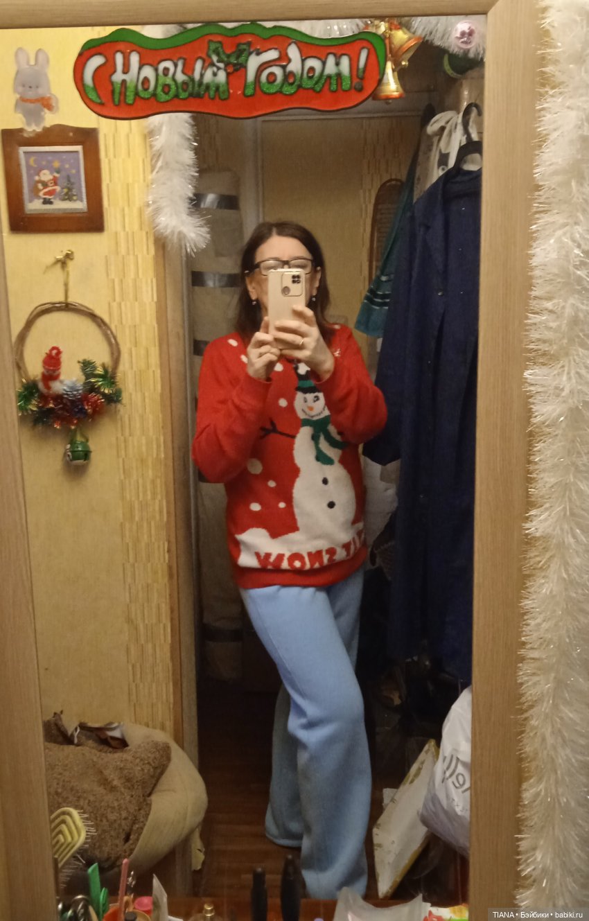 На фон не обращайте внимания. Это я фотографировала, какие брюки сшила. Но раз свитер в кадре, то покажу.