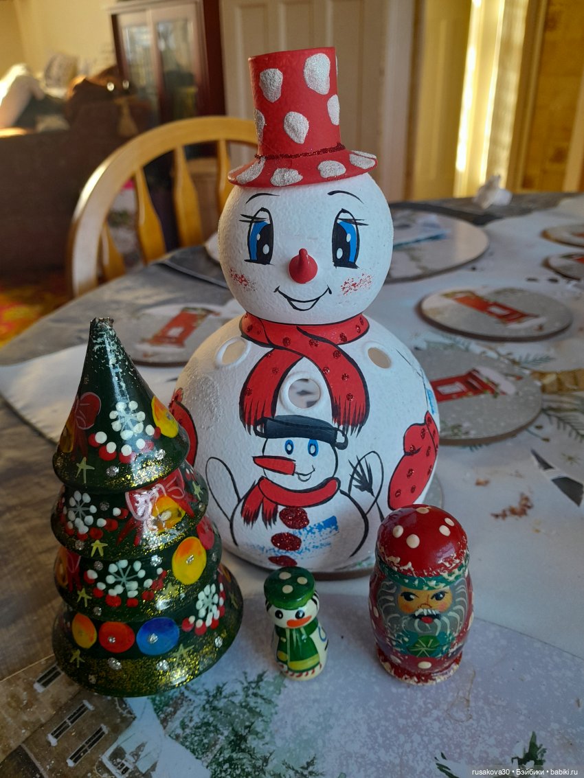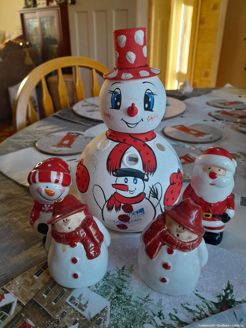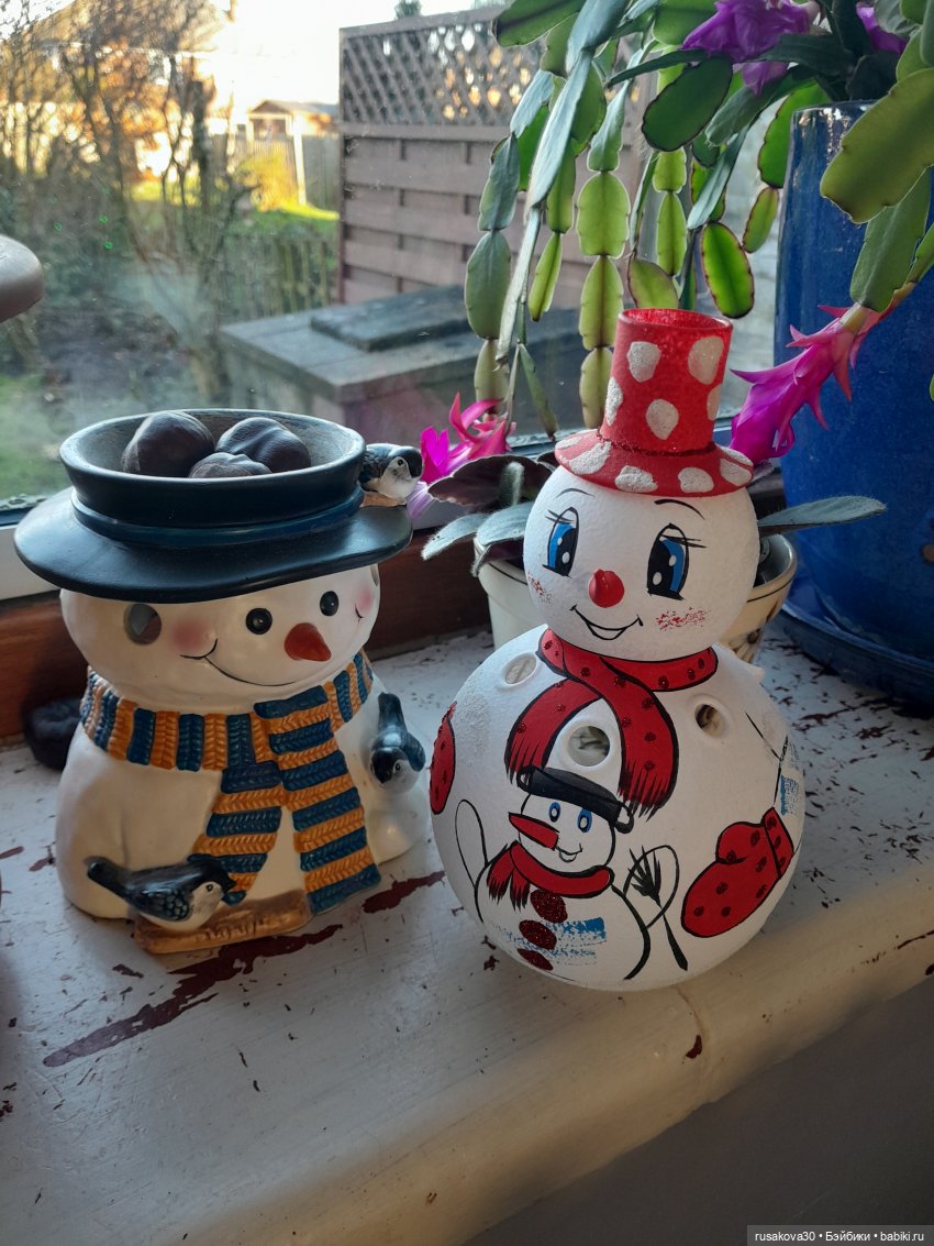Вот этот снеговик и Санта, были куплены 20-ть лет тому назад.В мой первый Новый год и Рождество в Англии.