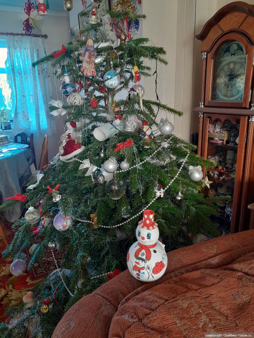 А на елочке у нас снеговичрк со студентческих времен, подарок моей соседке по комнате.