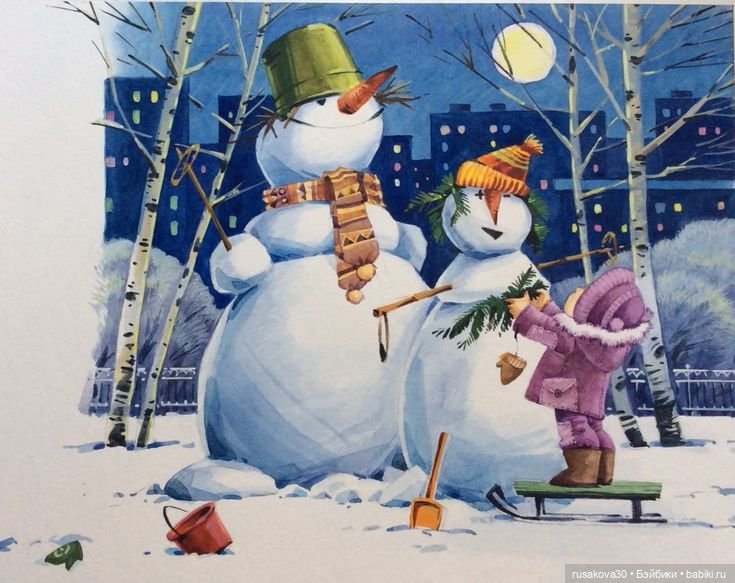 Про снеговиков было интересно) Мы в детстве лепили)) Но морковку ни разу носом не делали)) Всегда из палочек втыкали. И вёдер под рукой не было — тоже из палочек причёску или корону делали)))