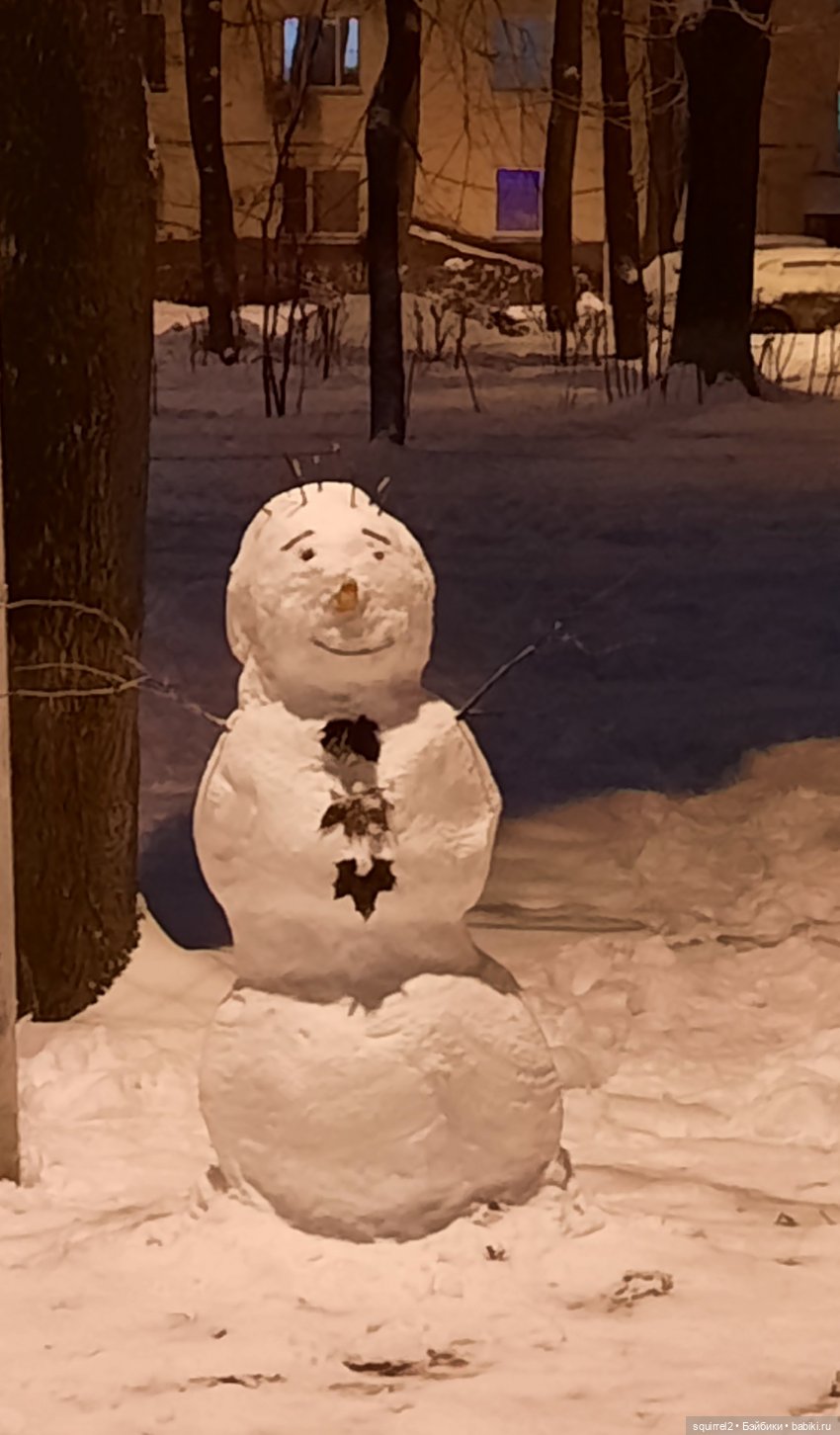 А это свежеслепленный снеговичок Олежка
