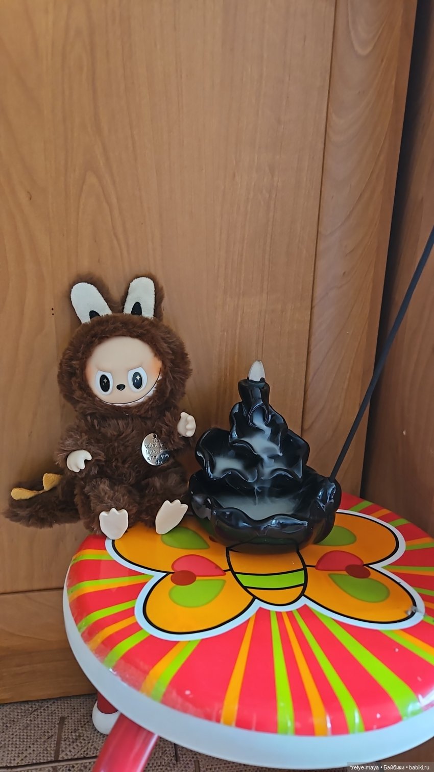 Изначально зарекался больше одного Лабубу не брать, но увы, понял, что одному моему «питомцу» будет скучно, потому и попросил маму сходить на рынок, глянуть ещё одну такую «зверушку».