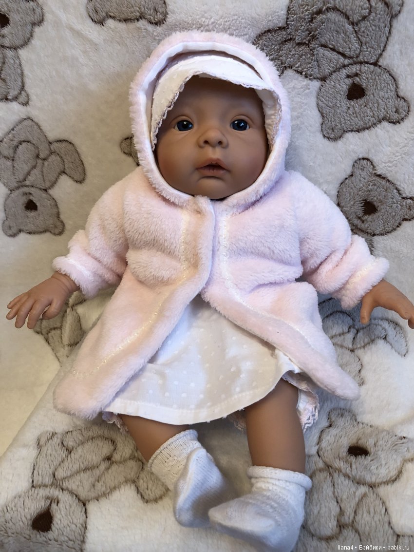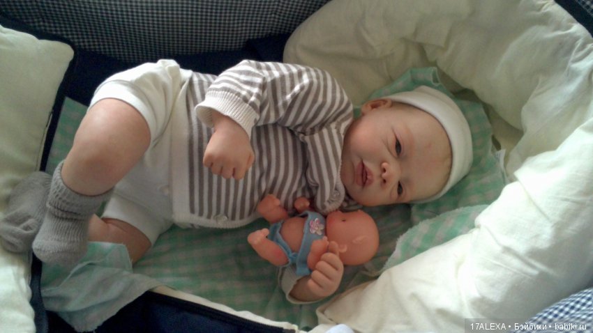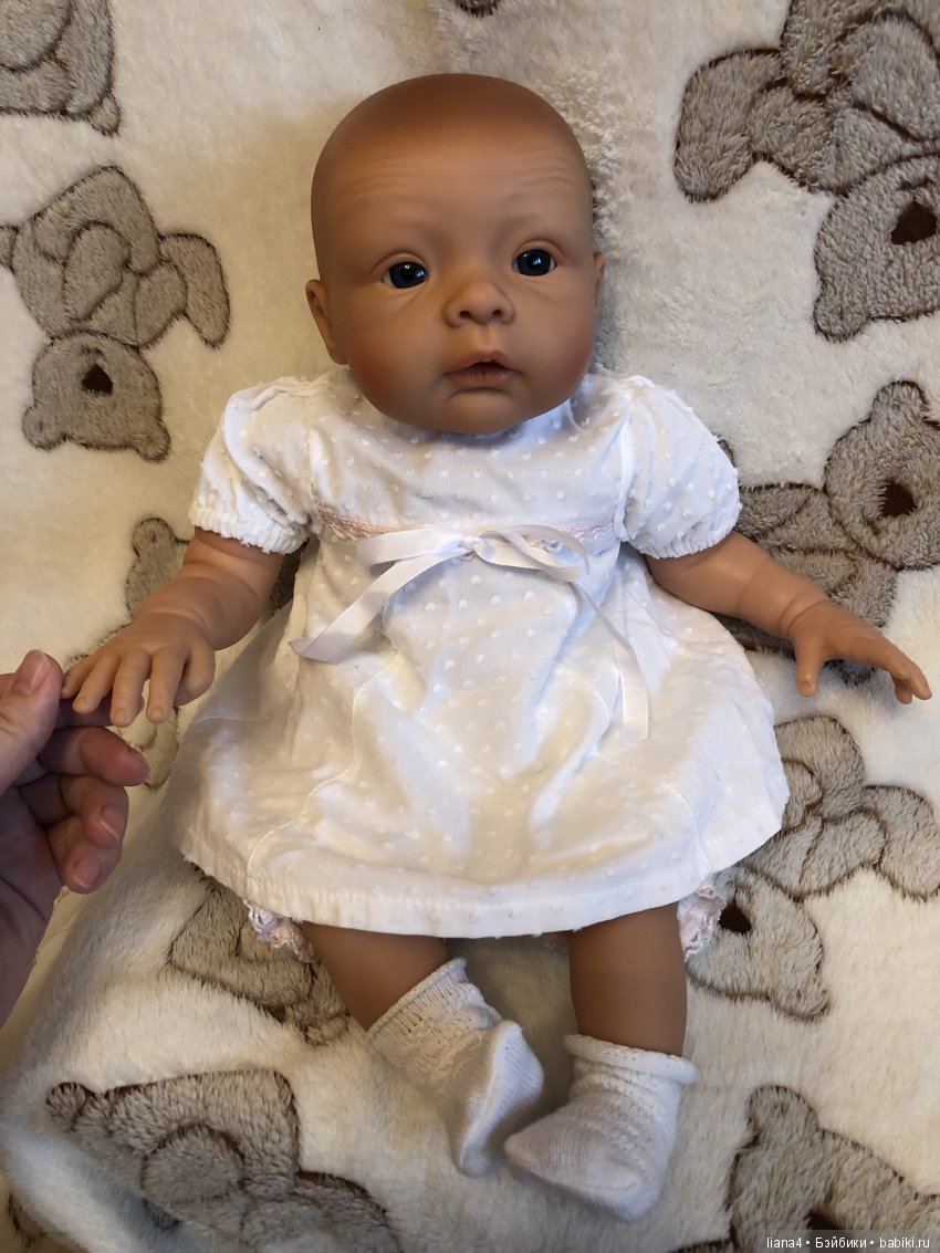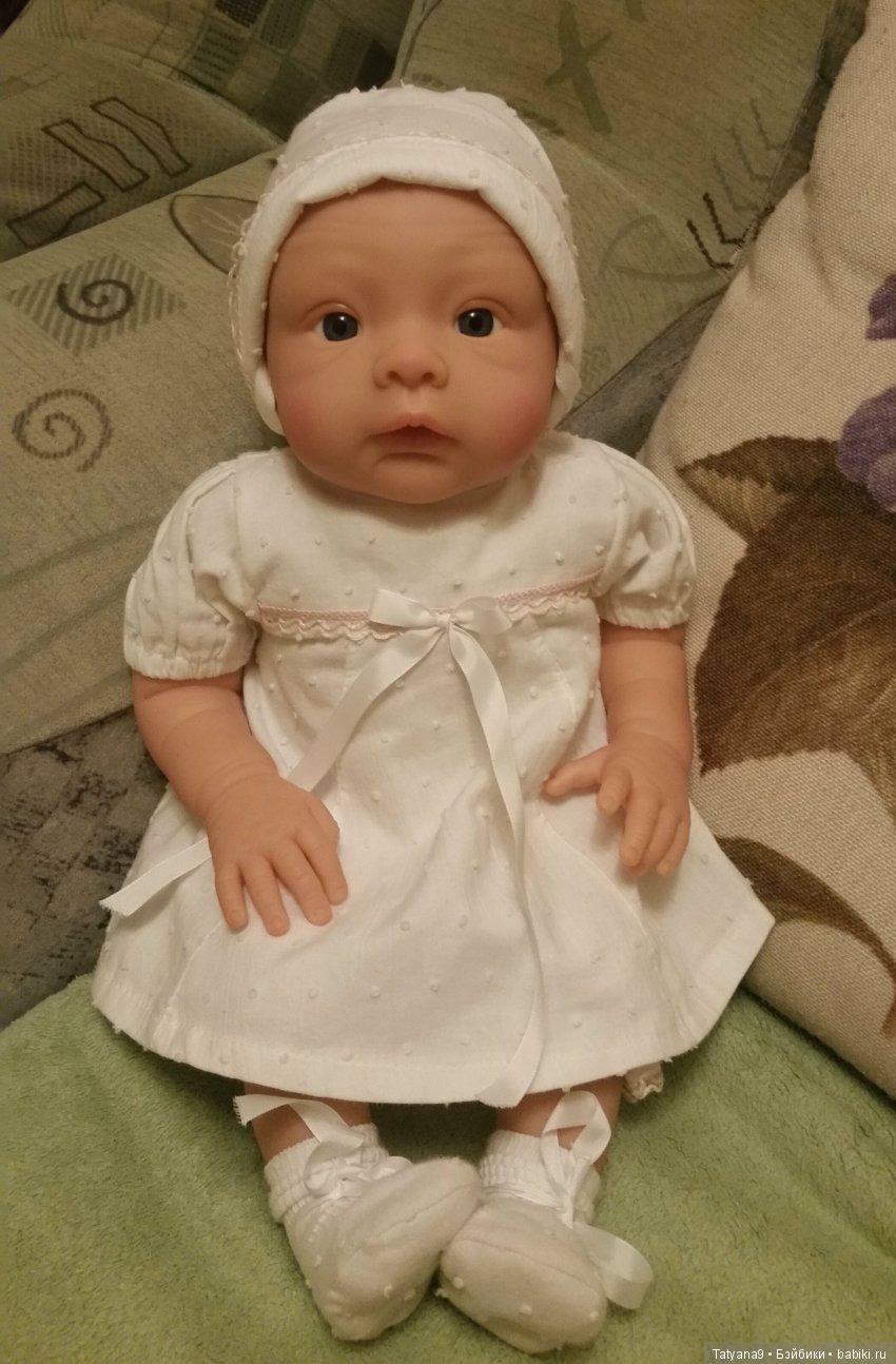 Привет! Вчера приехала наконец то моя кроха, заводской реборн, реал эфект, Германия. До сих пор не могу понять свои ощущения, описать эмоции… они разные. В целом, живой новорожденный ребеночек. Рост 46-48 см, красивый аутфит, глазки стекло, легкая. Кроха очень тискательная и пластичная в руках. Сделана очень хорошо, качественно. Для меня не хватает росписи. Губки бледноваты, сливаются с цветом винила. Шапочку одели сразу же свою, кот купили заранее. Куколки редки, цена не маленькая. Все ляльки данного бренда очень интересные. Будем наряжаться в свое, домашнее и выкладывать фоточки. Большое всем спасибо, кто к нам зашел. Ждем своих братишек и сестренок в гости. Очень интересно посмотреть на подобных крох миакулти)) фото сделала на тел. За качество извиняюсь заранее