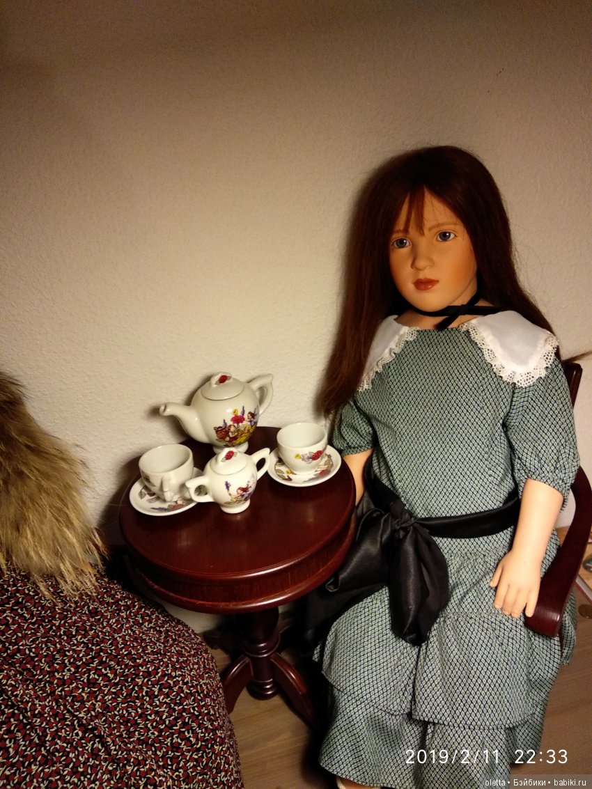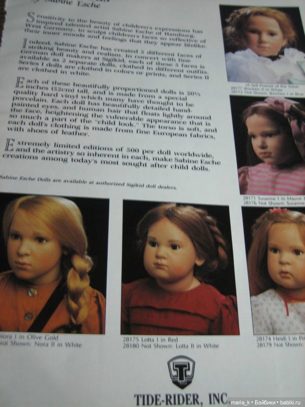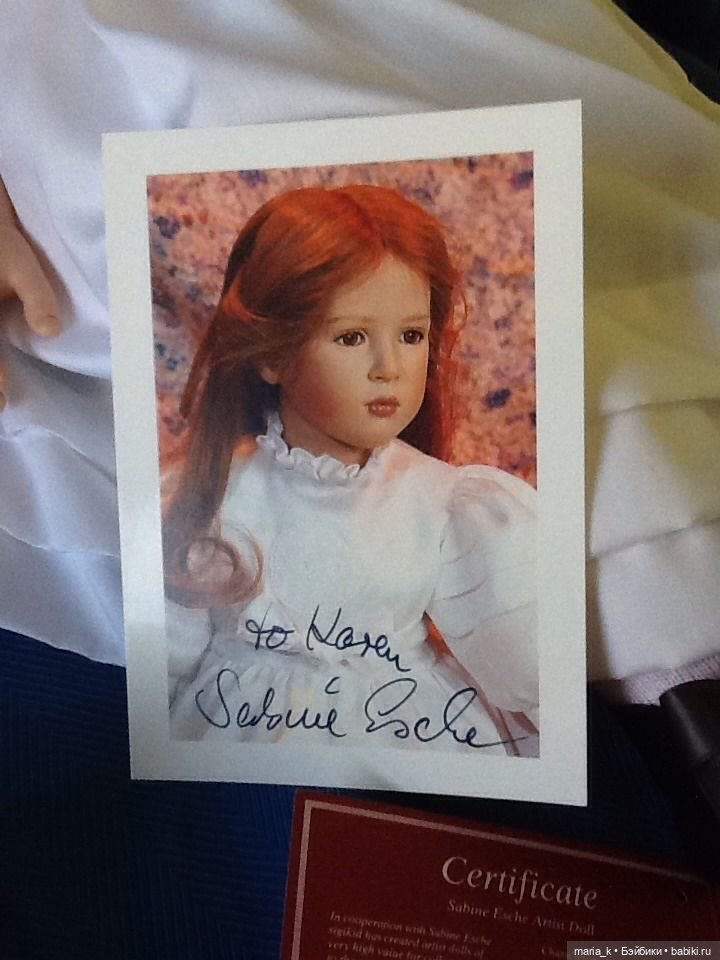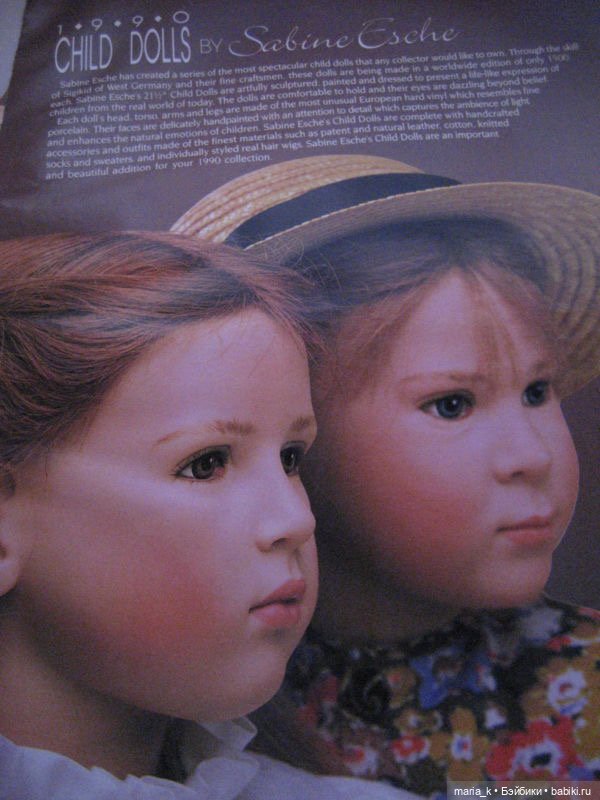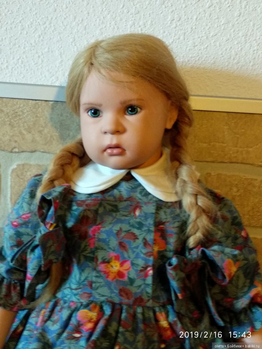 Давно я присматриваюсь к куклам автора Sabine Esche. Доступная цена только у тех, у кого глазки нарисованные. Это первое что меня смущало. Долго я ходила вокруг да около, но решилась удочерить девочку. Имени и года выпуска не знаю к сожалению, очень надеюсь на вашу помощь в этом вопросе. Состояние куклы отличное, идеальный винил, натуральные волосы, родной аутфит (огромное спасибо продавцу Радмиле за столько аккуратную девочку). Она меня впечатлила и я с уверенностью могу сказать что будут еще сестренки (все таки очень надеюсь на стеклянные глазки, Мона та, которую бы мне очень хотелось следующей). Очень бы хотелось пообщаться со знатоками Сабин Эш, на сайте не так много топиков, но любители явно есть. Большое спасибо, что заглянули к нам! Приглашаем всех в гости!