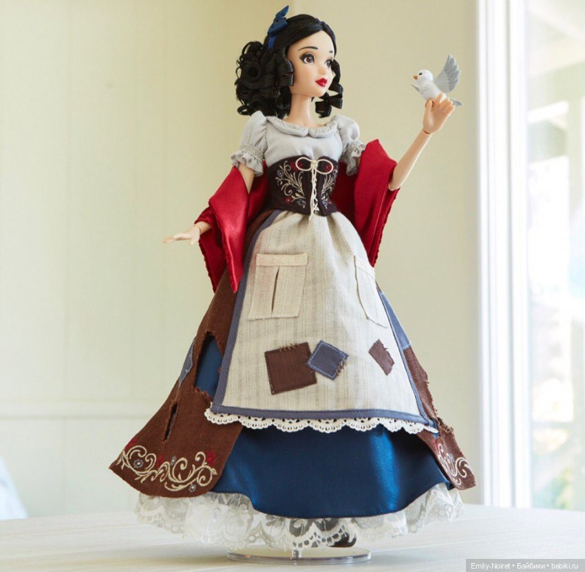 Белоснежка… По мультфильму такая миленькая и пухленькая, как сладкая булочка. Мне всегда хотелось, чтобы куклы были с нестандартными телами, приближенными к мультяшным персонажам. Белоснежка — пухленькой, а Золушка — с маленькой ножкой, чтобы её туфелька не налезала на ноги других кукол и т. п. Но, к сожалению, Дисней в этом плане порадовал нас только куклой Моаны. Все остальные куклы — длинные, тощие, стандартные.