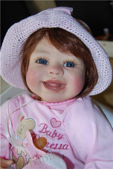 А вот информация про нее.Кукла художника Monika Petra Lechner.Есть 2 варианта: Ванесса(для европы) и Медиссон(для америки, отличается одеждой, цена 149$).Сделана из силикон-винила, очень мягкая, на ощупь даже немного липковатая.Очень реалистичная, что видно на фото