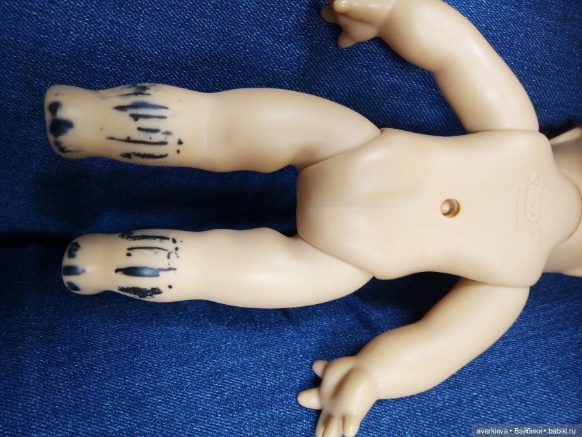 На подошве ноги надпись не вывелась, придется подержать еще. Как раз у меня теперь работает инфракрасный обогреватель, с ним эффективнее. А вот на солнце класть кукол не советую, пластик и винил выгорают, и могут быть ожоги. Только в тепло!