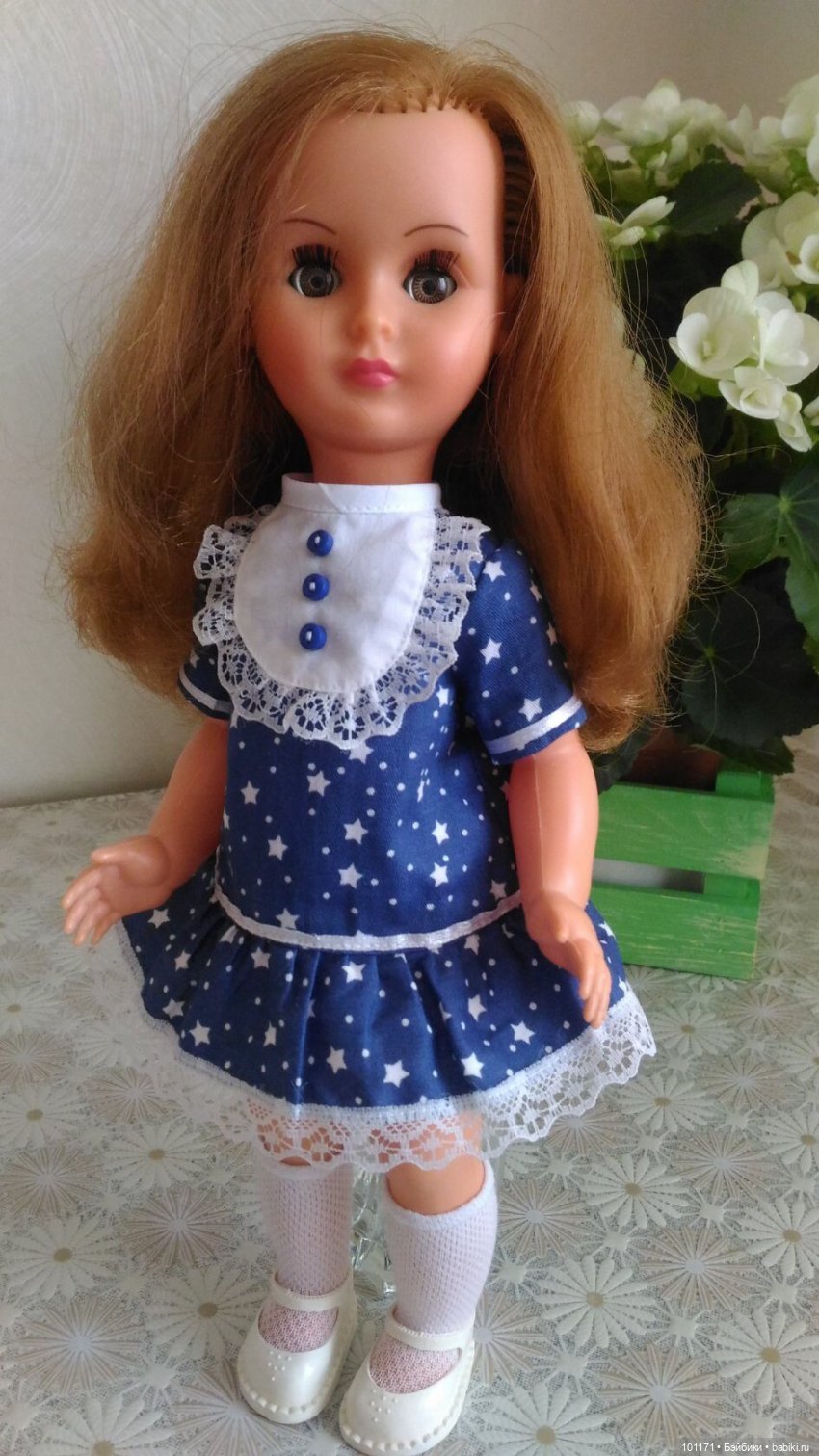 Эту куклу я купила в 2014 году на аукционе Молоток, раздумий не было, она понравилась мне с первого взгляда. Когда я доставала её из посылки у меня просто замерло дыхание, она оказалась просто воздушной, а когда открыла глаза, сразу вспомнились слова из песни: хлопай ресницами и взлетай… Механизм глаз работал исключительно нежно, других слов у меня не находилось.