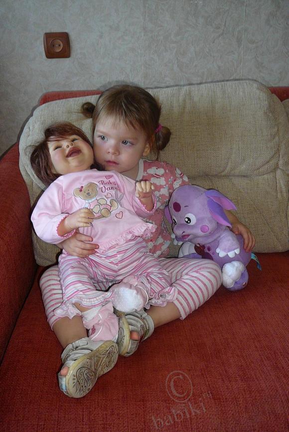 Поздравляем с такой красавицей, очень рады за тебя. И поздравляем дочку и тебя с наступающим днем рождения. А мы все никак не наиграемся Майке, каждый раз вспоминая тебя добрым словом. Столько счастья ты нам дала! Ванесса нравится безумно, наша хотела.Так что при случае имей нас ввиду. Еще раз поздавляем!!!