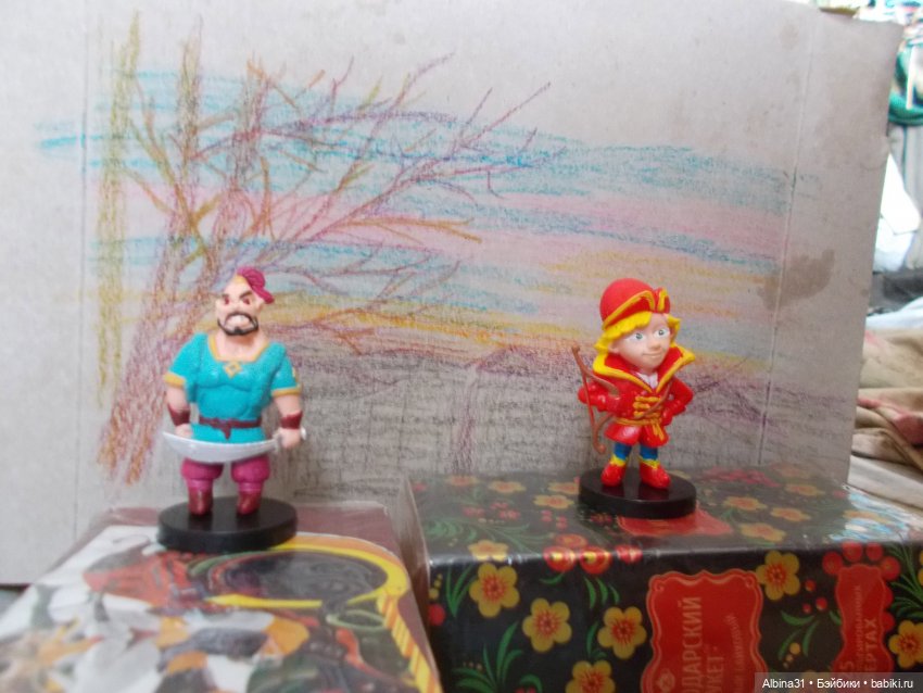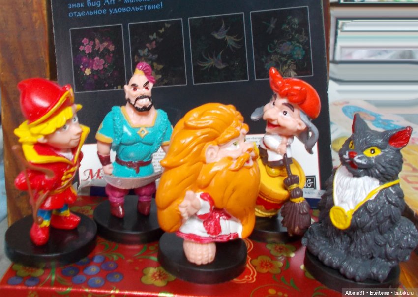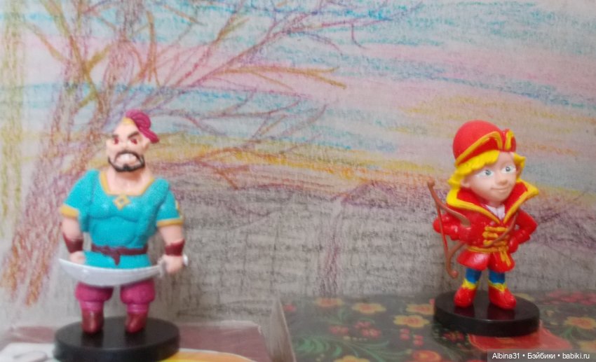 На днях купила милые фигурки сказочных героев, в Галамарте продаются. Не посмотрела, что не тот выпуск, но рада всё равно, все хороши :). Но я хотела хоть одного богатыря :), но они не из этой серии…