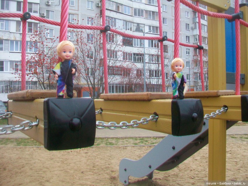 Даже вывела их уже на прогулку в комбинезонах подружек.