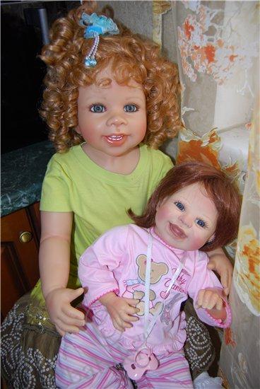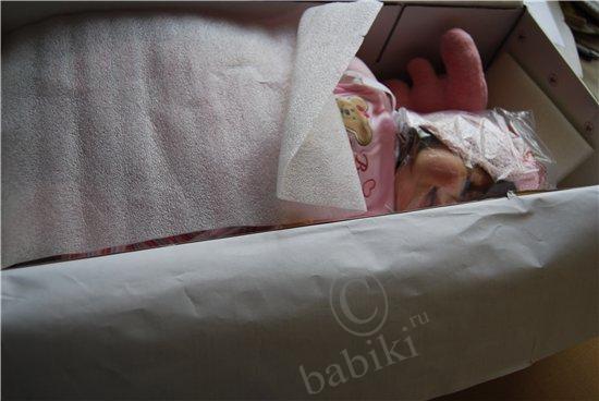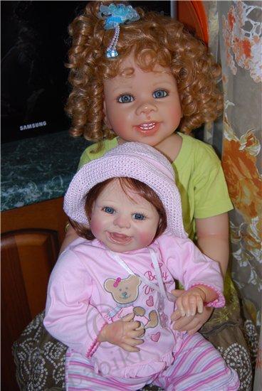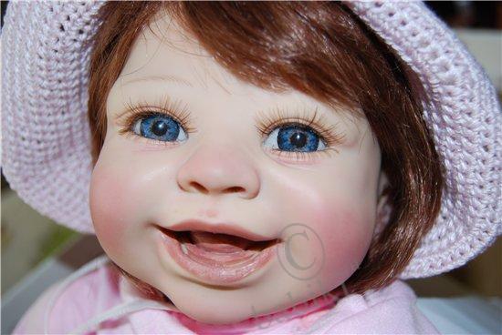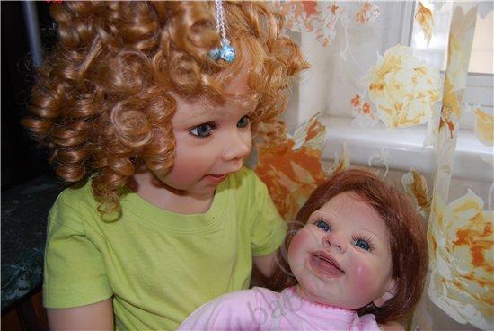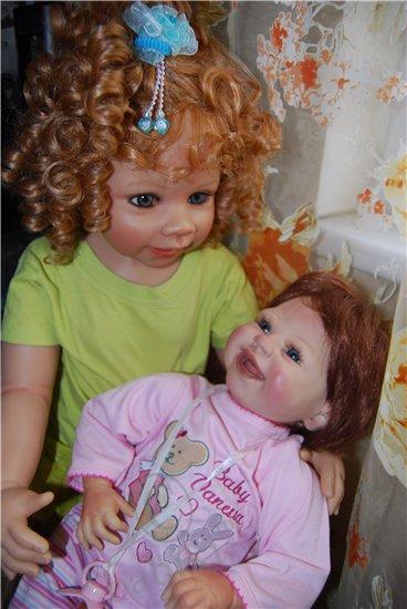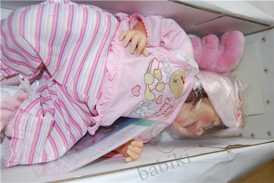 2 килограмма радости ( в реале больше 2), но разве можно измерить радость и счастье??? Невозможно описать, что я испытала, увидев в ящике маленький листочек, я ждала ее дольше и больше всех, во-первых, потому что она была большой мечтой, во-вторых, она долго блуждала по Европе, потом вместо Москвы попала в Питер))) А начиналась история с того, что тут, на Бейбиках я увидела фото улыбающейся малышки, которая покорила меня сразу, а увидев ее имя, я поняла, что это судьба, звали ее Ванесса. Мой ник в интернете уже очень давно, именно Ванесса, многие даже не подозревают, что меня зовут по-другому, собственно, я настолько привыкла к этому имени, что готова приписать к своему и его в паспорт. Начала спрашивать посредников, смотреть сама, ее все не было, и не было нигде, и вот мои знакомые едут в Европу по делам, в том числе и в Германию, пока они там были, я каждый день «ненавязчиво» напоминала о своей мечте, видимо озверев от моих стенаний, они нашли тетку, у которой есть эта кукла и пристав мертвой хваткой, уговаривают ее продать, рассказав какую-то страшную историю о сумасшедшей из Москвы, которая, ну, никак не может жить без этой куклы. Потом посылают ее мне почтой, а сами отправляются дальше. Я жду, жду, кукла вылетела из Германии, в Россию не прибыла, и так 2 недели… потом, вдруг, она прибывает и оказывается в Питере, наконец она здесь, но на почте обнаруживается, что к посылке приделаны бумажки о возврате посылки, после короткой схватки работники поняли, что я бульдогом держу коробку и отдавать не собираюсь ни под каким видом, пришедшая начальница пыталась оставить до выяснениния, но я сказала, что буду спать тут, а коробку не выпущу… и вот мы дома, больше не буду говорить, просто смотрите на счастье! Кстати, небольшое дополнение, эта Ванесса оказалась подреборненной, как объяснила немецкая тетка, у нее сделаны новые натуральные ресницы, подкрашены ноготки, сама подкрашена, открыли ноздрики и заменили внутреннюю набивку.