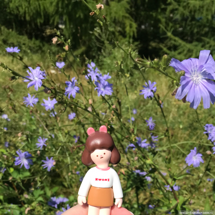 Куклы эти продаются в коробочках, внутри которых запаянные пакетики из фольги, карточка. Она отлита из винила, раскрашена вручную, ростом 9 см. Kwoni очень фотогеничная и удобно брать с собой. Теперь фото куколки.