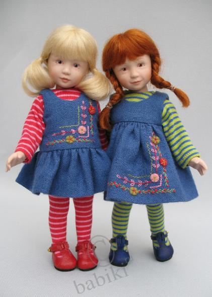 Все куклы созданы руками самой художницы — от самой куклы до одежды. Куклы сделаны из фарфора, глаза нарисованы — выглядят как живые, на голове паричок из качественного мохера.