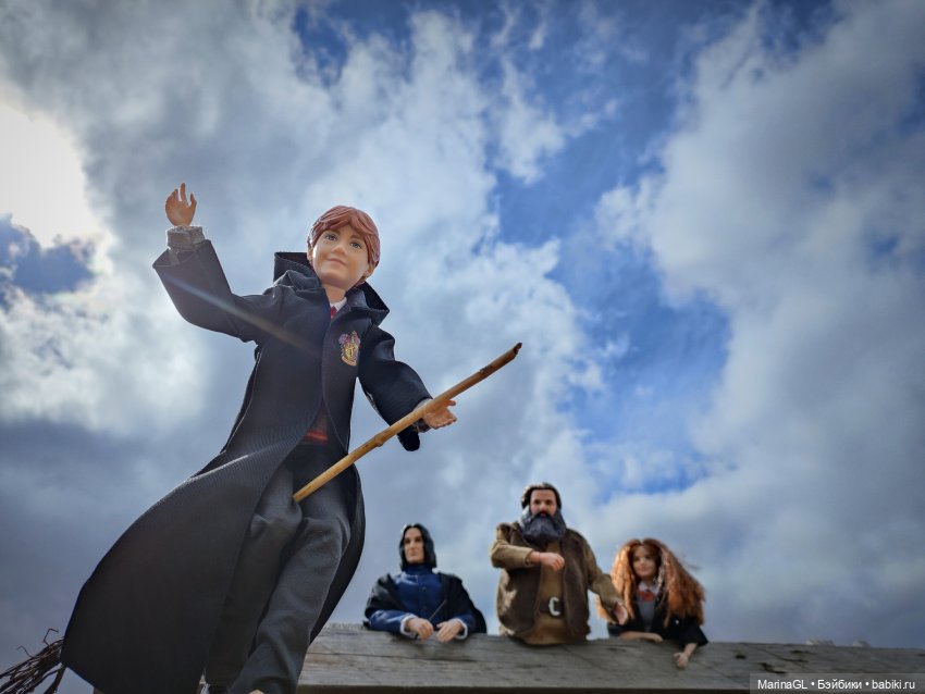 4. Игроки летают на мётлах по игровому полю, не касаясь ногами земли (можно портретные фото, но на метле)