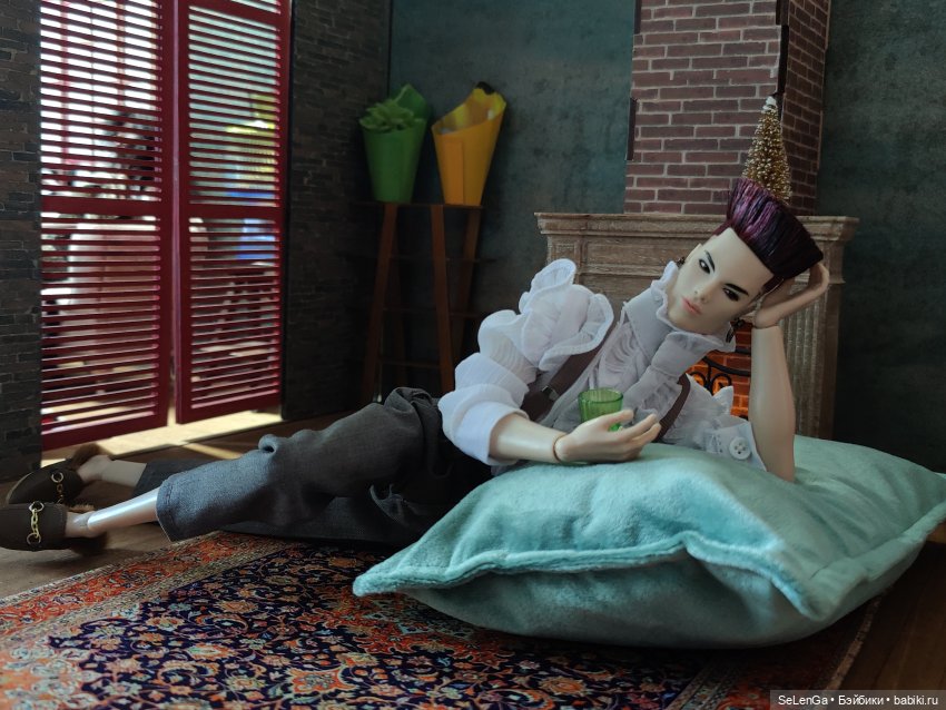 Ноги Камиллы я изначально думала как-то обыграть, а тут повод показать, как красиво ножки сгибаются на щелки. Правда там не видно, что натягивает ручкой чулок))