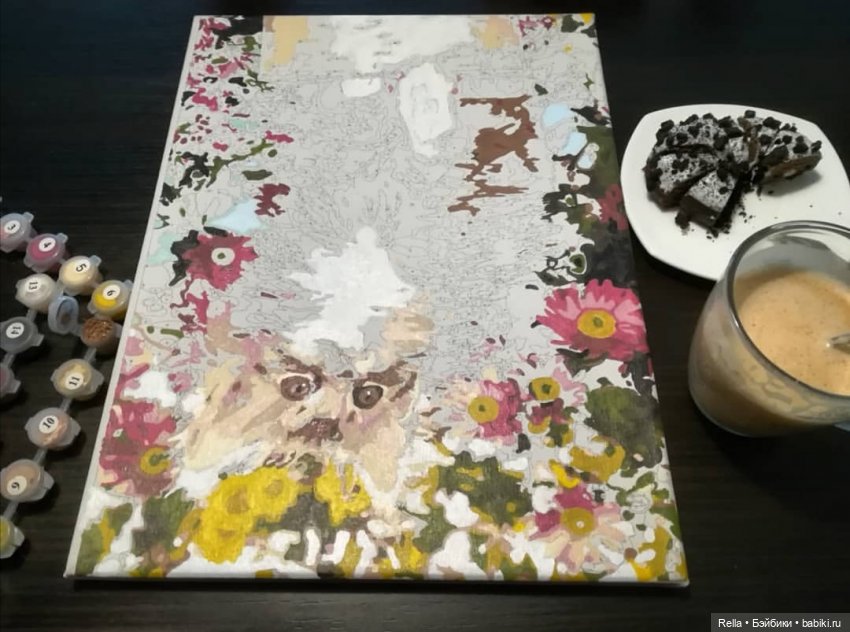 Купили набор, начали с дочкой на каникулах рисовать, ей быстро надоело, а меня затянуло. Но так получилось, что пришлось на месяц отложить картину, а когда решила её дорисовать все краски высохли, хотя были закрыты