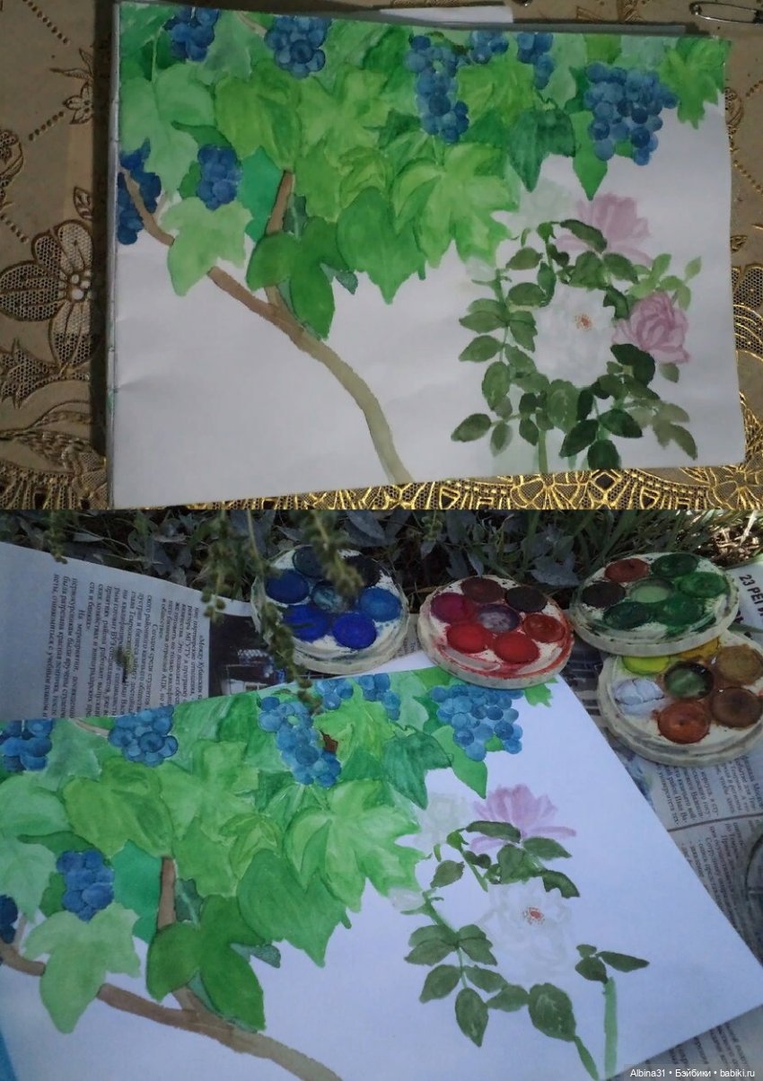 Я нарисовала за два дня, но некоторые краски за ночь стали вязкие, добавила немного воды и вперёд!