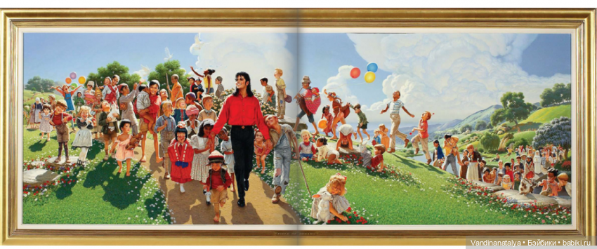 Куда ведёт детей Майкл??? Надеюсь, всего лишь в свой «Неверлэнд» –личное поместье неподалеку от Лос-Анжелеса, в Санта-Барбаре, где певец воплощал в реальность свои детские фантазии, создав настоящий парк развлечений с кинотеатром, помещениями для видеоигр, различными аттракционами, зоопарком и небольшой железной дорогой.