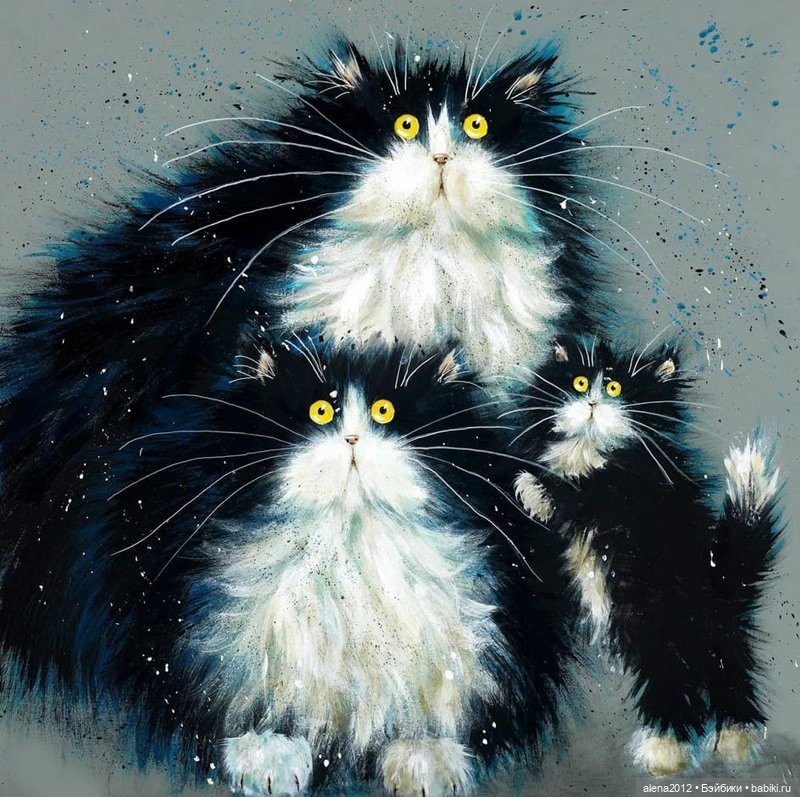 Замечательные и радостные пушистики от Ким Хастингс из Англии в любой хмурый зимний день добавят солнечного света! Её картины написаны акрилом. Сама художница говорит, что её больше привлекает цвет от чем форма или предмет. Ведь для художника важнее передать эмоции.