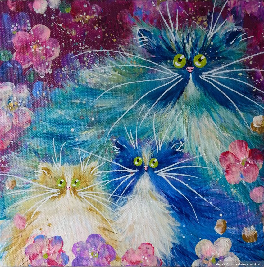 Когда она рисует, коты тыкаются носами в мокрые краски.