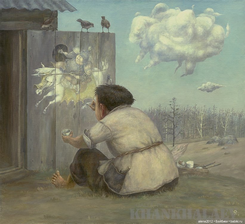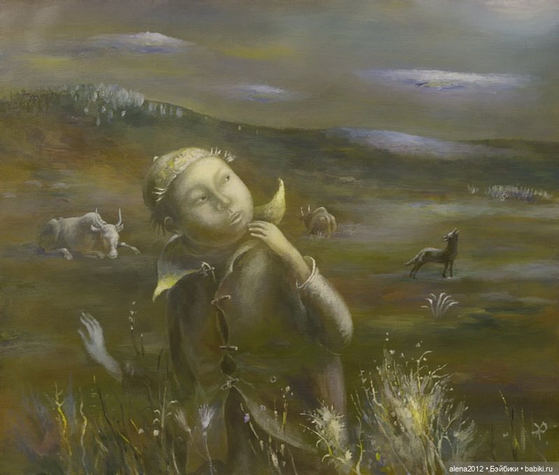 Хочу предложить вашему вниманию трогательные картины бурятского художника Жамсо Раднаева. Его картины завораживают, это другой мир, сказочный, далекий, из детства. Тёплые, наивные, немножко утрированные и очень добрые. В них светлая грусть и легкая ирония. Чаще всего Жамсо рисует детей, но есть и взрослые — «большие дети». Как же он любит свой край, своих людей — остается только восхищаться!
