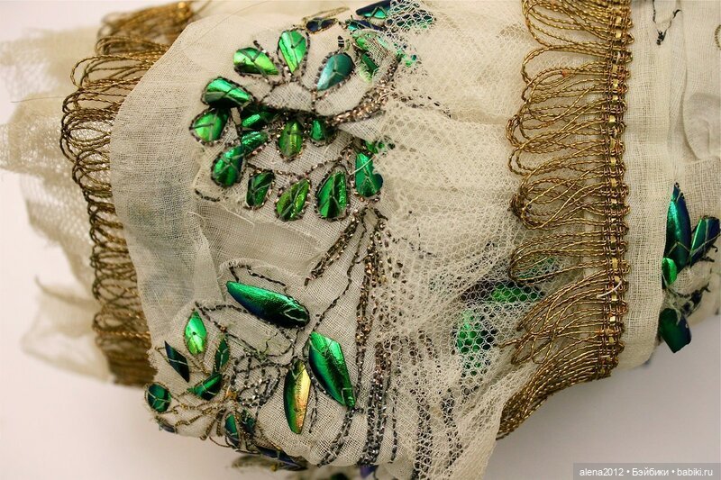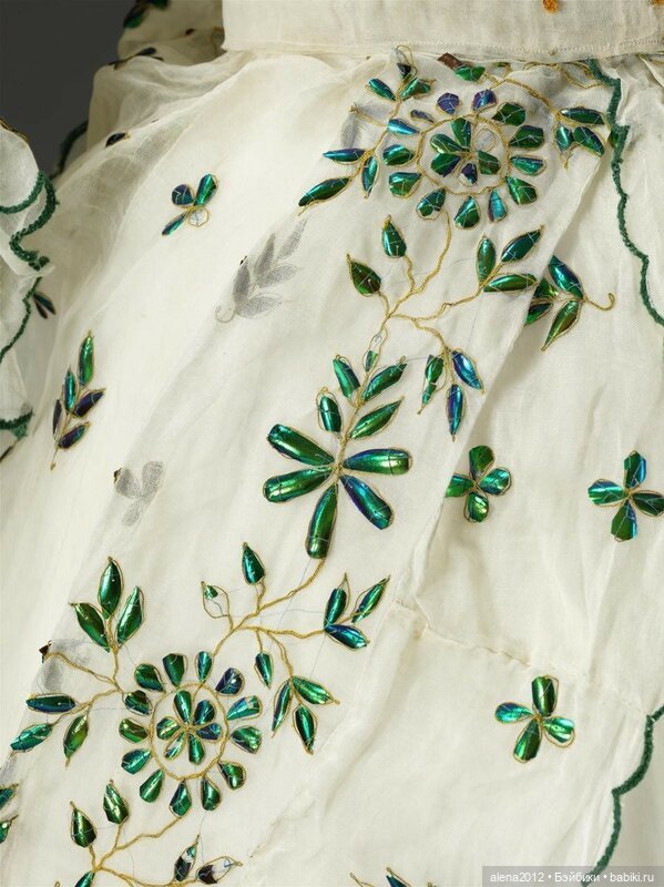 Со временем, муслин и тюль рвутся, а вот с надкрыльями, практически, ничего не происходит. Поэтому некоторые музеи не демонстрируют платья на манекенах, а только в горизонтальном положении, в специальных коробках.