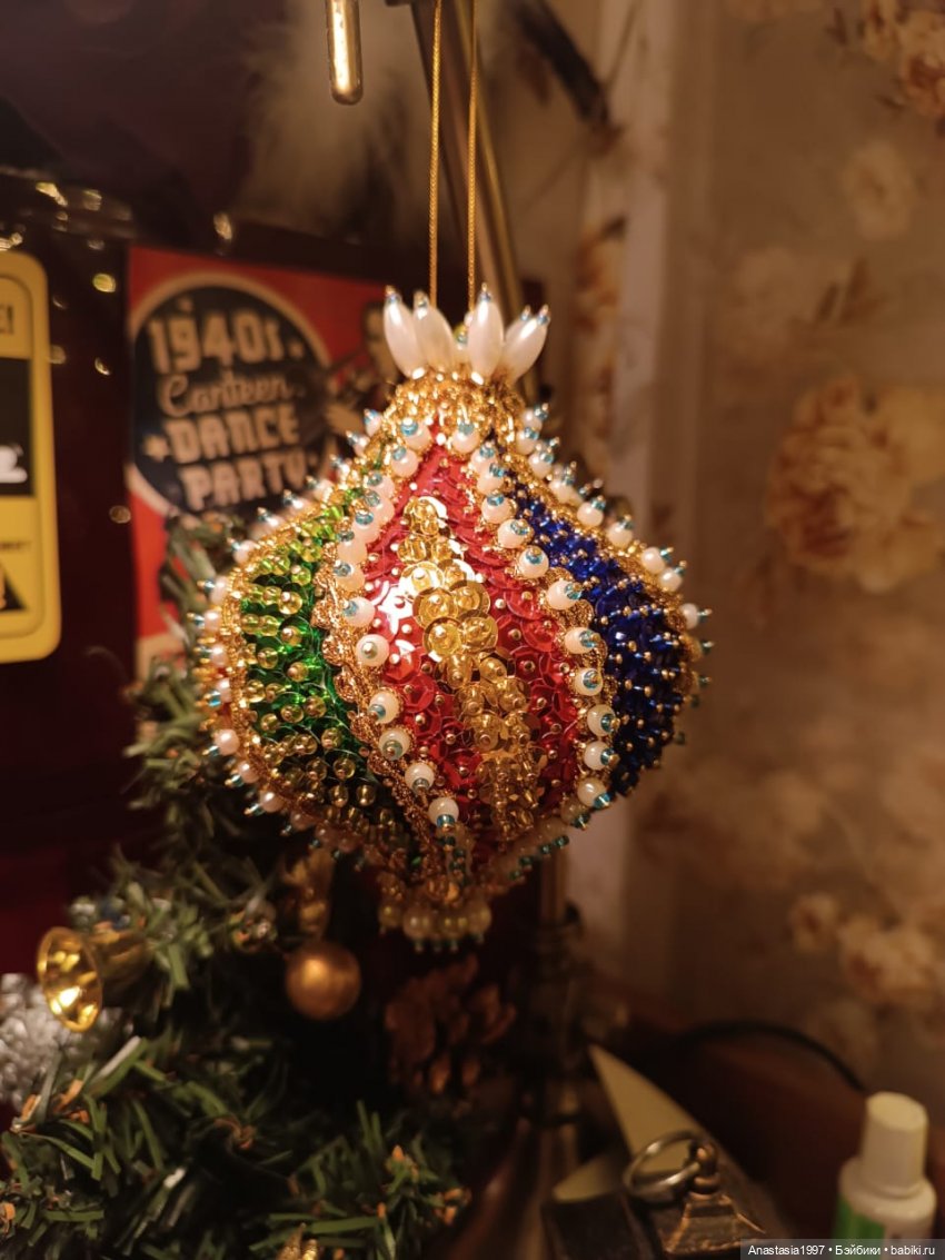 Пайетки и бисер на булавочки к пенопластовому шарику крепятся