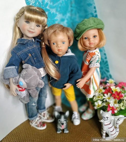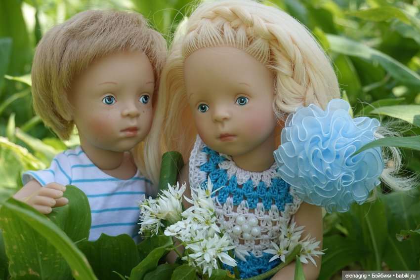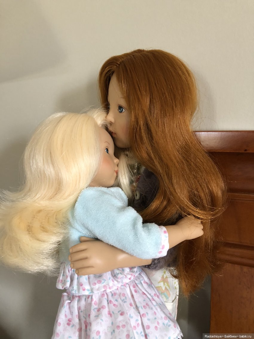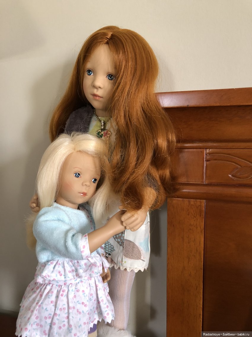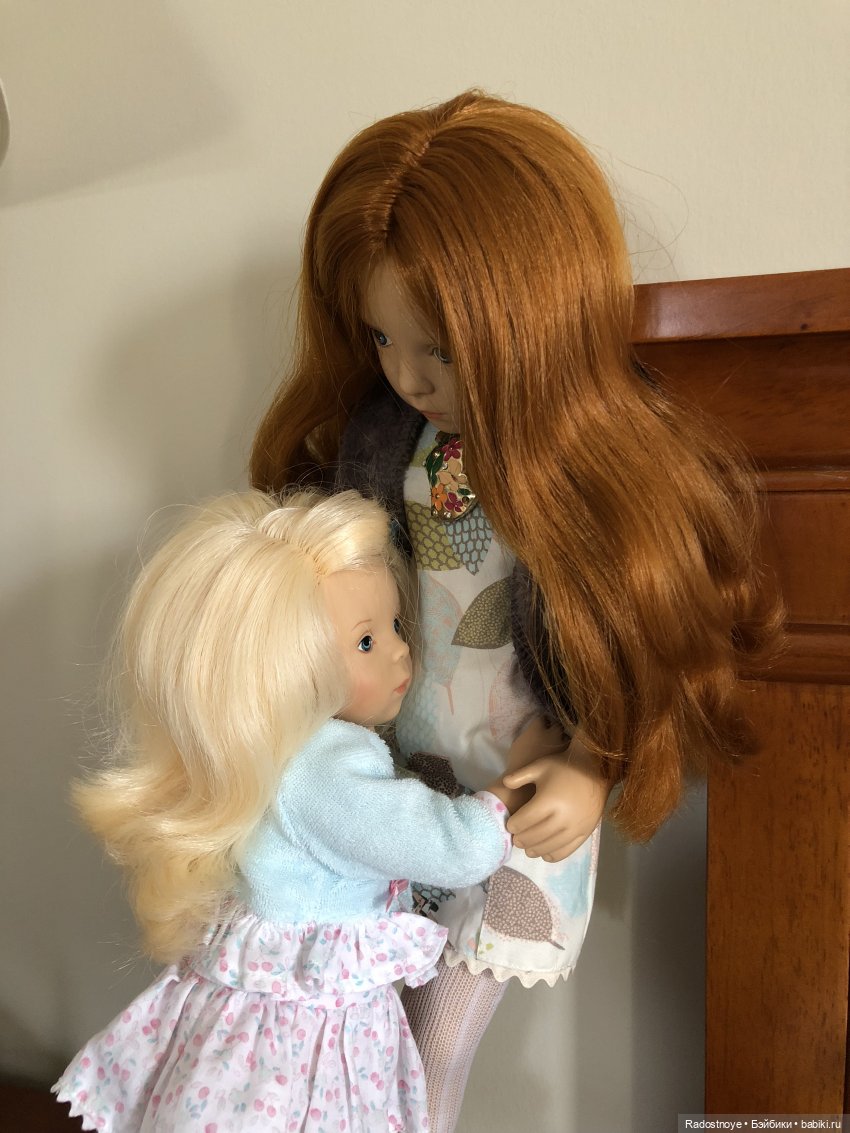 В случае с Минушкой нашелся прекрасный вариант: я нашла ей старшую сестру! Finouche Alix от Сильвии поселилась на полочке. Теплый, слегка задумчивый, обаятельный ребенок. Уже не малышка, но такая девочка-девочка! Мне приятно ее брать в руки, расчесывать, переодевать. С Минушкой они восхитительны вместе!