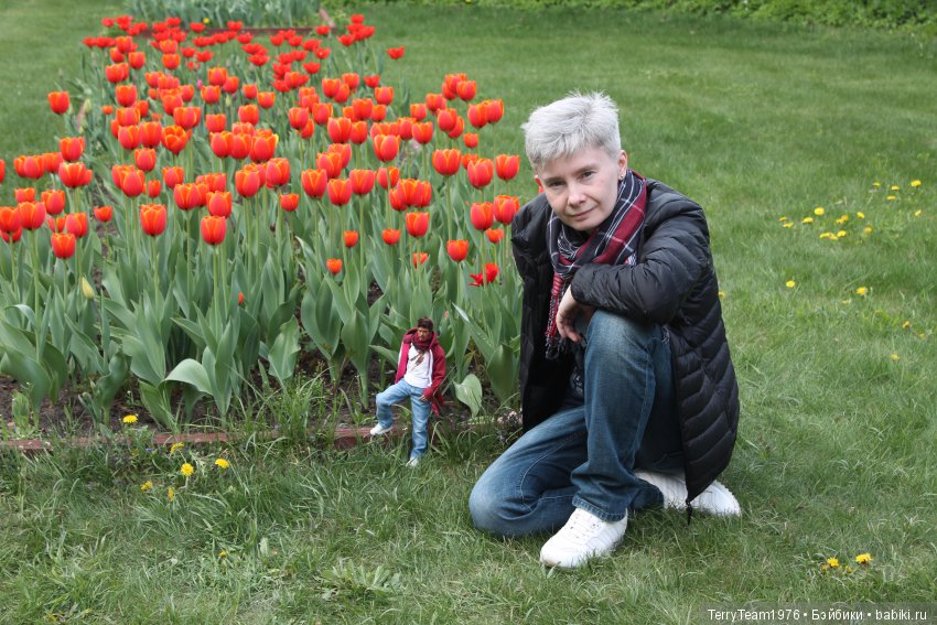 Тюльпаны ещё не везде в парке распустились