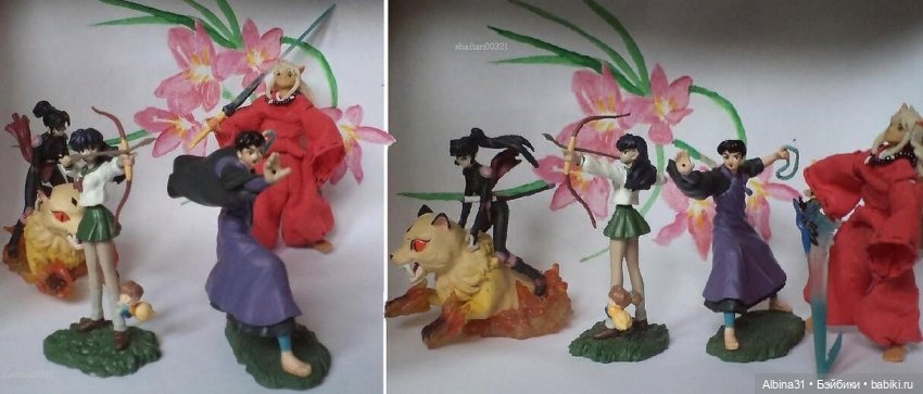 Когда то я то же очень хотела Инуяшу, но у нас продавалась только одна фигурка и поза мне не нравилась, пришлось то же лепить, Со временем сломалась его причёска, возится с запекаемым пластиком больше не хочу, думаю волос сделать из чего нибудь другого.… я его наверно пересушила, так как пришлось несколько раз склеивать руки-ноги.