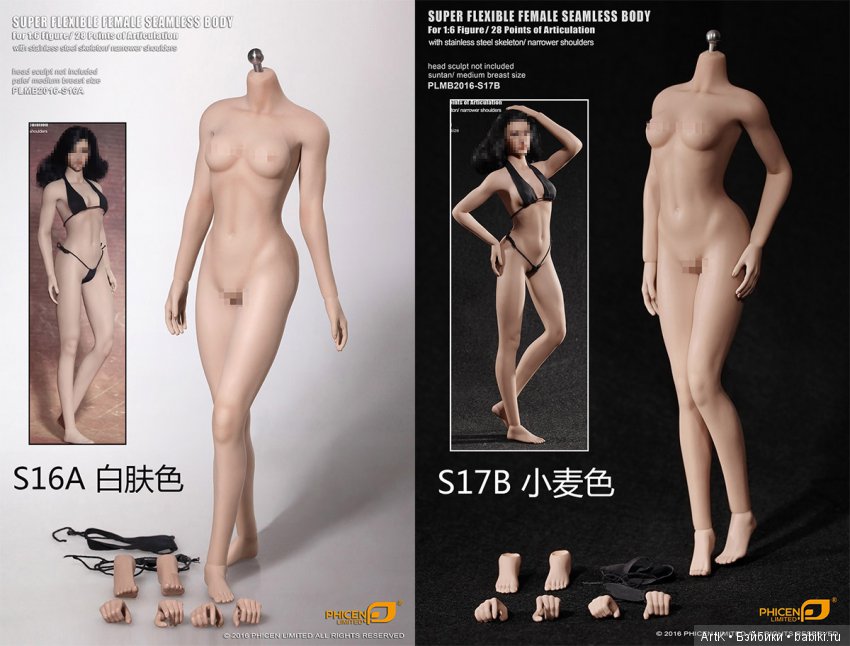Общая информация о модельном ряде подвижных экшн-тел в базовой комплектации для бесшовных кукол Phicen (TBLeague) на стальном скелете в масштабе 1/6. Хронология выпусков, краткое описание моделей с фотографиями.