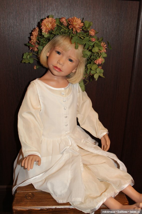 Аутфит у неё очень простенький на мой взгляд. Белый комбинезон и накидочка. Венка на голову у нас не было изначально. С ним она интересно смотрится и аутфит вроде как в тему.