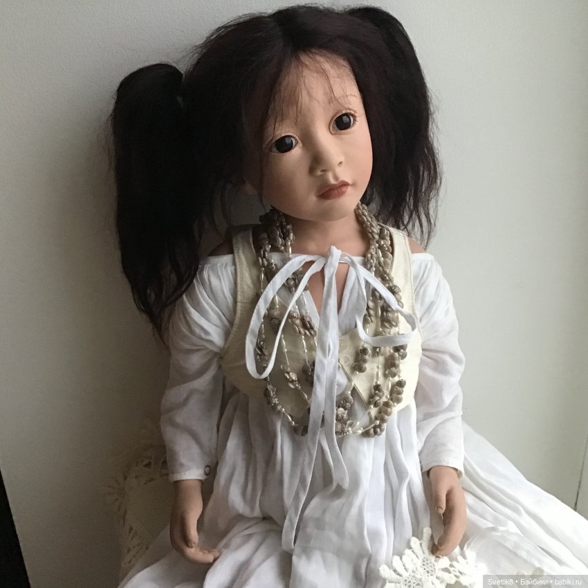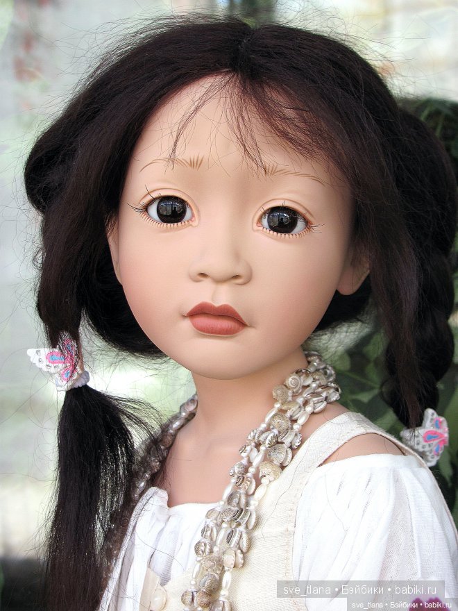А пока я любуюсь и любуюсь своими азиатскими детками! Они бесподобны! И если у Кима паричок из натуральных волос, то у Прешенс волосы из мохера. Эти волосики придают образу нежности и легкости… и я еще раз убеждаюсь, какой великолепный вкус имел Филипп Хит! В кукле продумано все до мелочей: прическа, украшение, взгляд, складочка на лбу, которая придает личику трогательную озабоченность… (Очень надеюсь, что платье таки придумал не он ))