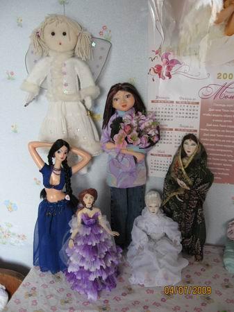 Это часть нашей, теперь уже довольно большой кукольной семьи. В ближайшее время в ней ожидается большое пополнение. К теперешним куколкам добавятся Адора, несколько капусток, а также две паолки. Готовлю фото, теперь уже почти антикварных, куколок немецкого производства в национальных костюмах Германии и кажется Чехии. К сожалению, костюмы частично утрачены, может найдется кто-то, кто сможет мне помочь в их востановлении.