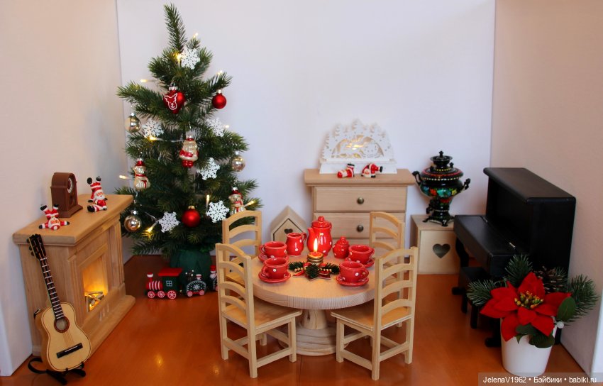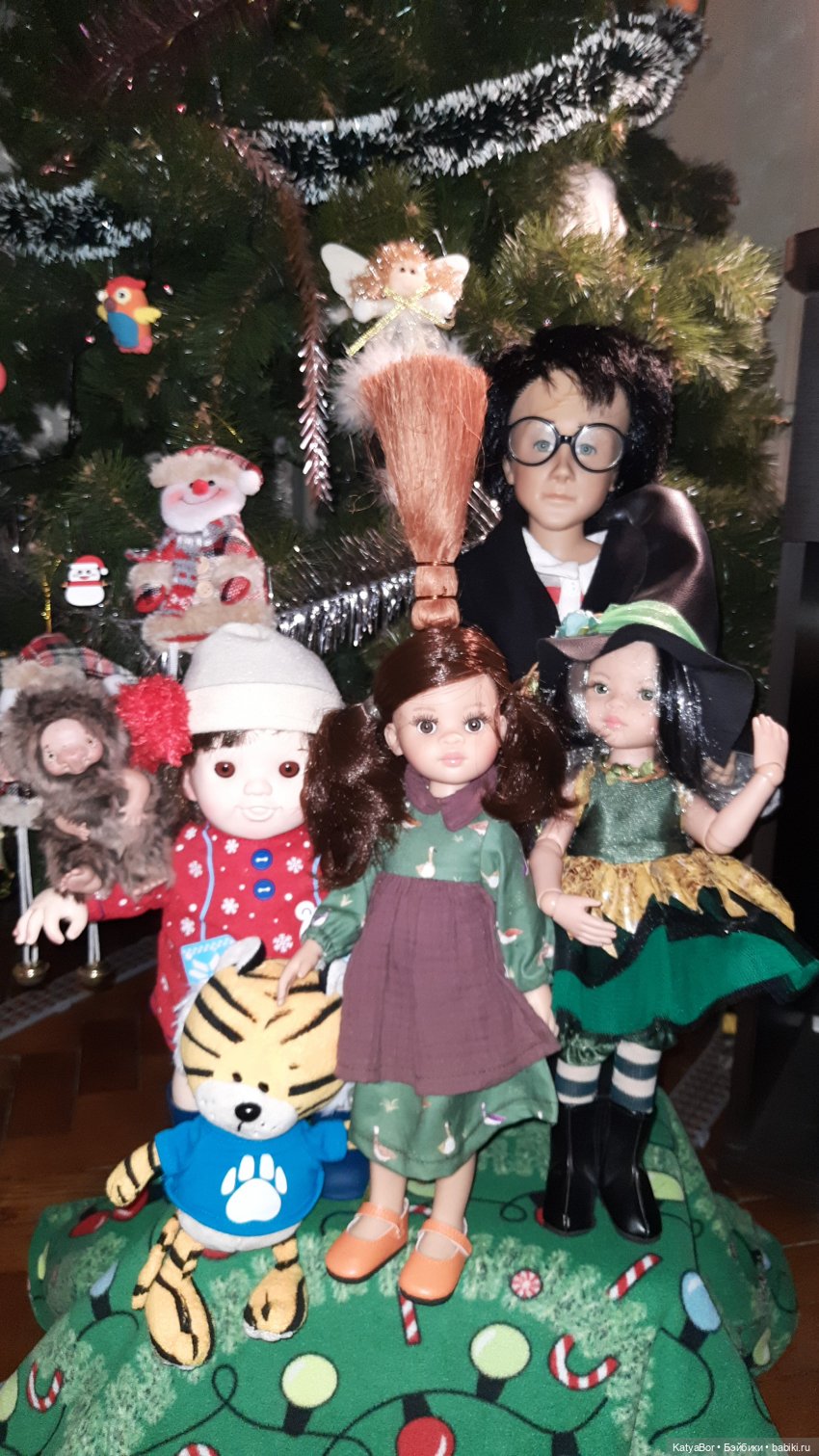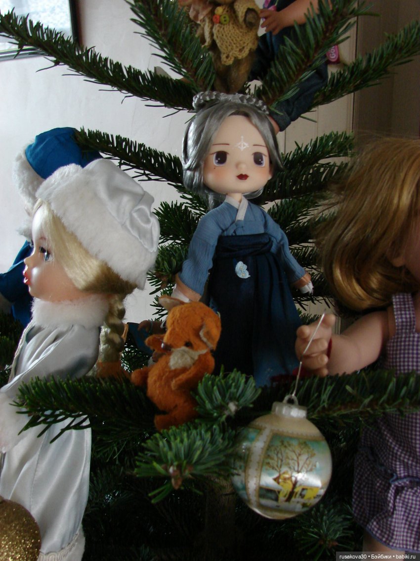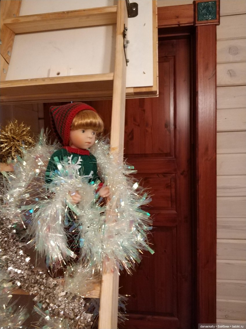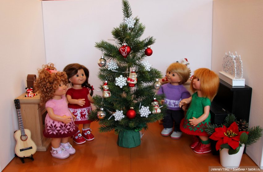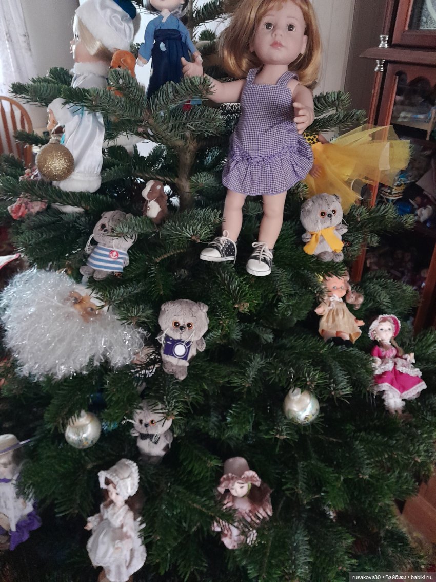 По названию решила, что это будет маленькая ёлочка для кукол, и они сами будут её наряжать, а куклы на ёлочку залезли…