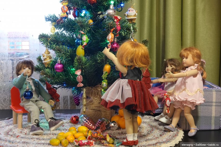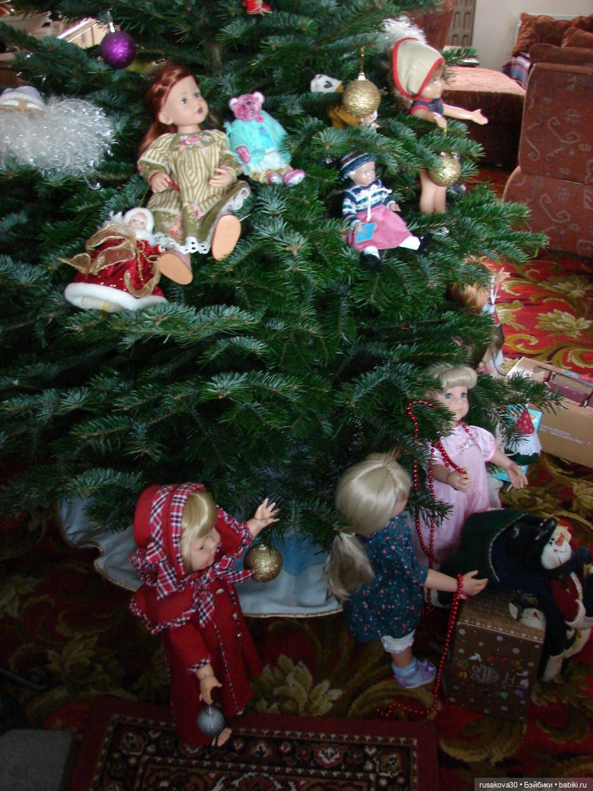С куклами была веселая, они сами конечно же на елку прыгнули, разместились удобненько, ноги свесили… В новогодние дни все бывает…