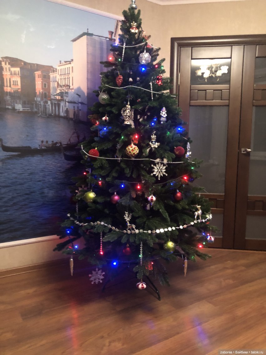 Нашу ёлочку ещё не совсем нарядили, Сашка помогал. Достал гирлянду из сундука на чердаке)