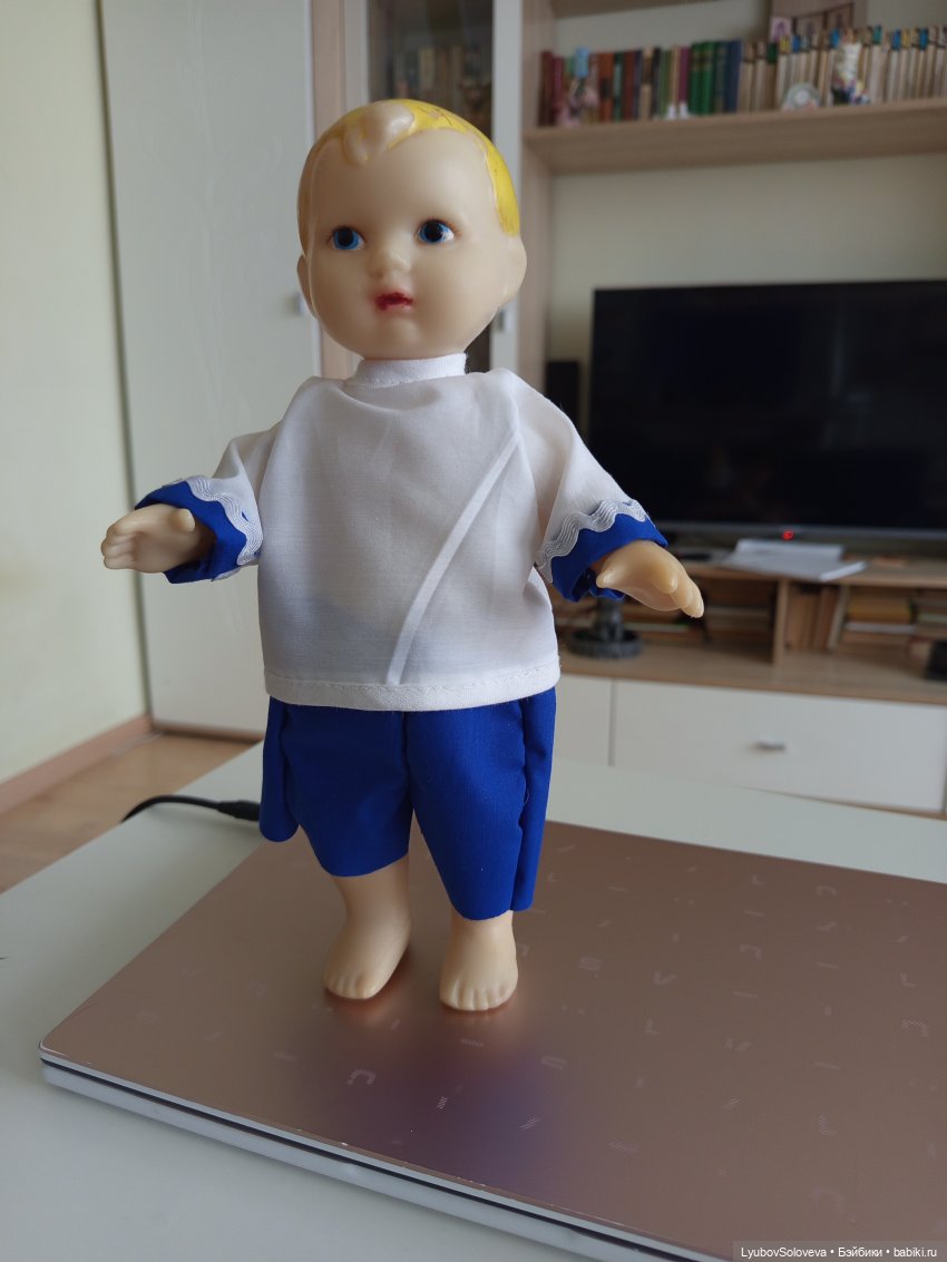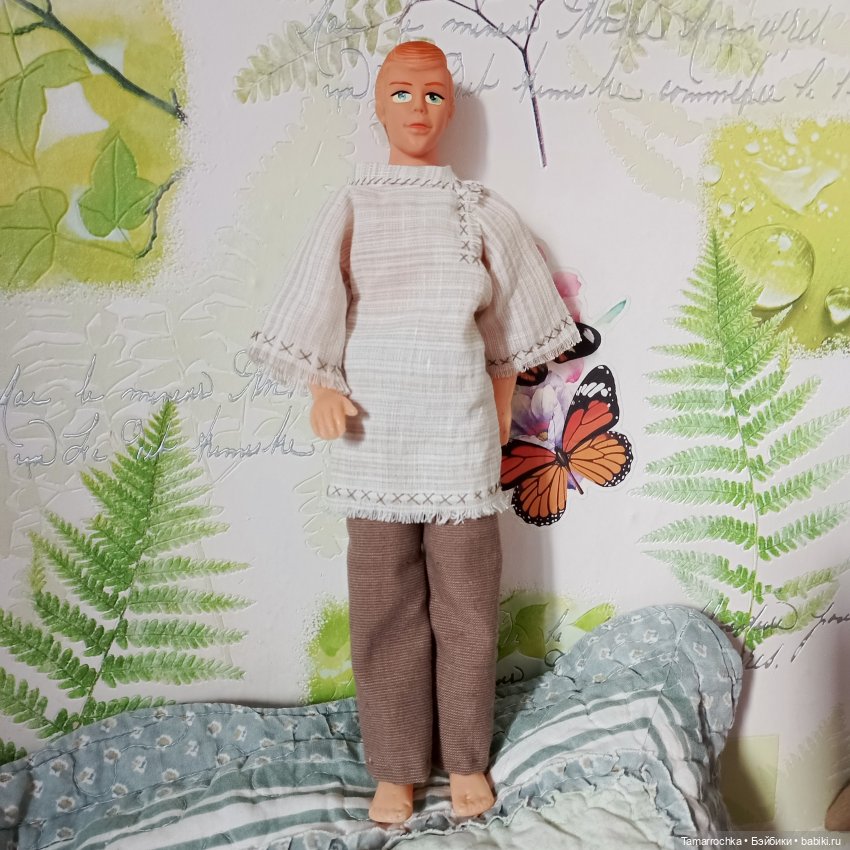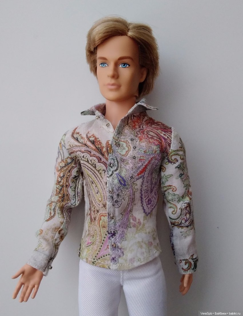 Пришлось откопать в закромах другого блондина для демонстрации, благо голых кукломужчин у меня много. Я дошила рубашку из пробной ткани.