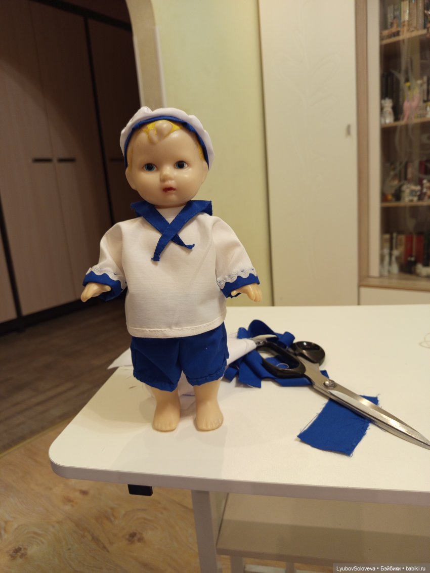 А до 23 февраля и Гоше-Кости штаны может сшить успеют))). Хотя, он тоже морской костюм хочет. Только в горизонтальную полоску. В вертикальную при его фигуре очень зловеще будет.
