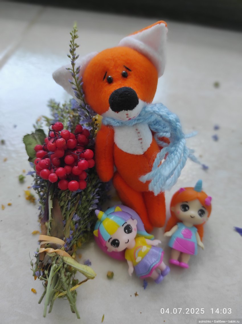 Ещё у меня живёт вот такой лис. Купила его на ярмарке мастеров в своем городе. Девушка сама шьёт. ФИО автора не знаю.